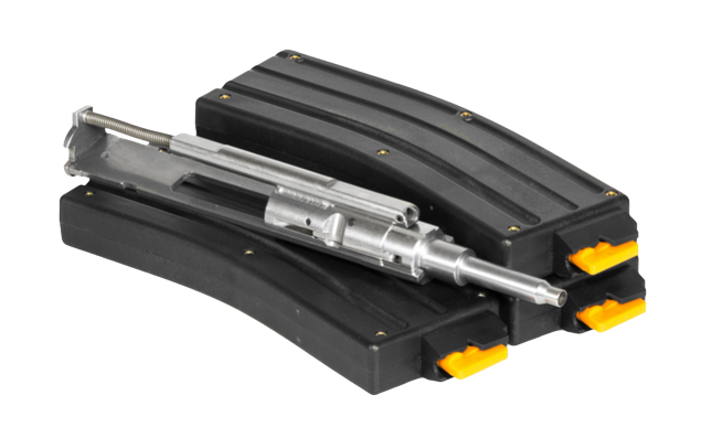 Just swap this drop in conversion with the bolt carrier group from your 5.56/.223 chambered rifle and you will be ready to shoot .22LR. Ships with 3 25rd magazines. For best performance use a round style hammer as notched hammers can cause function issues and 36 grain plated nose bullets have proven to be the best choice for function.