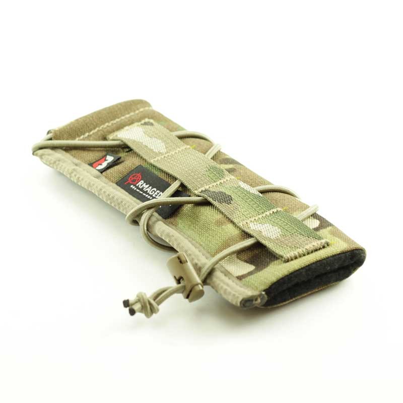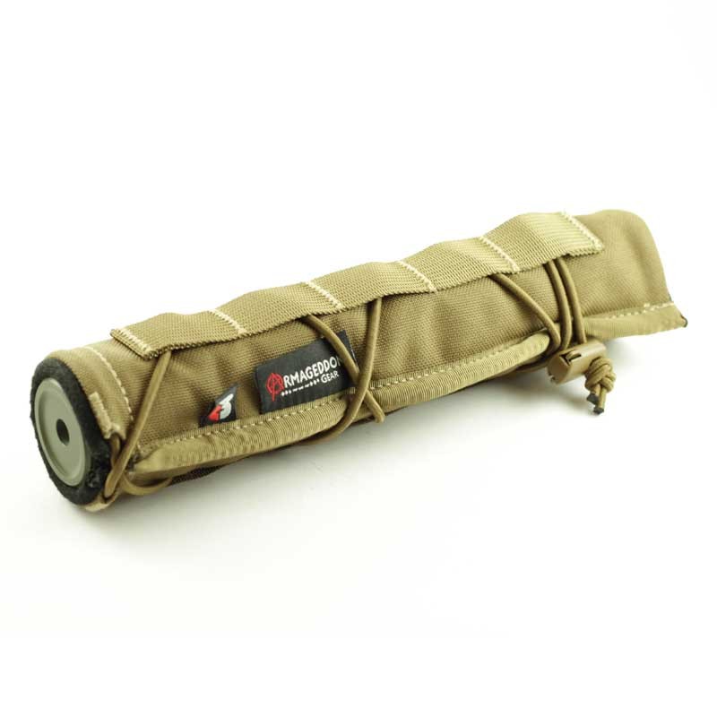 The Armageddon Gear Suppressor Mirage Cover significantly reduces and delays the effects of suppressor mirage on the rifleman’s ability to identify and engage his target. Highly-secure design stays in place during vigorous movements, yet can be adjusted or removed in seconds. Rated for use on bolt-action and semi-automatic precision rifle suppressors. Cover design ensures no contact areas between nylon shell and hot suppressor. Field-replaceable adjustable shock cord for custom fit and retention.