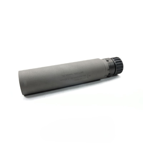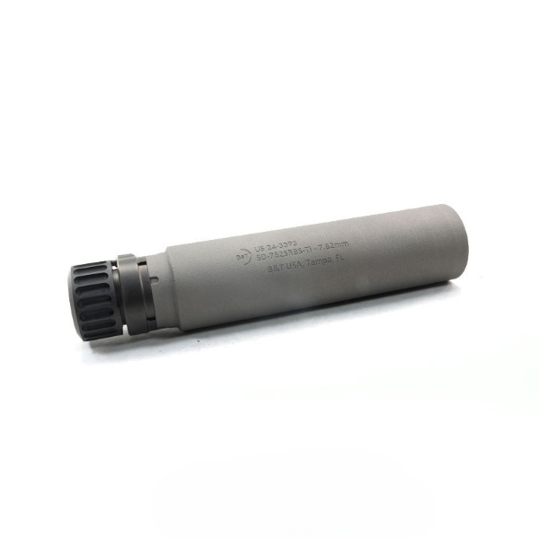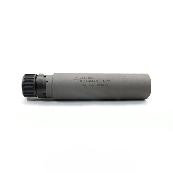 The B&T SRBS 762 Ti Full Size is a reduced backpressure titanium silencer with a slimmer form factor. This full-size silencer offers top-tier sound signature reduction and outstanding flash suppression. Even though it’s lightweight, it can still handle rugged use and high round counts. The reduced backpressure design keeps cyclic rate and bolt velocity regular, helps to extend the life of parts in your firearm, and minimizes toxic gas exposure to the shooter.