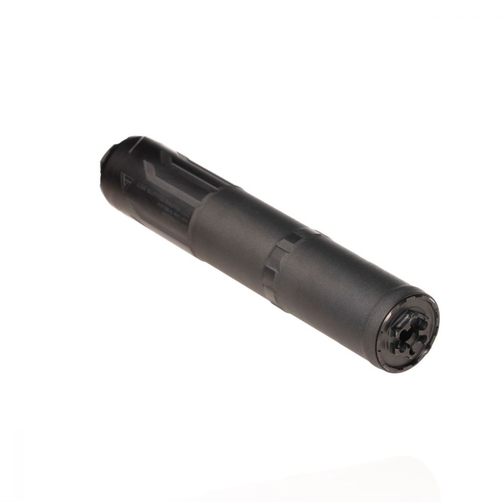 The CGS Hyperion is a rifle suppressor built for impressive sound reduction. At just 15.1 ounces, with a 9.5-inch length, the Hyperion is constructed of titanium for a light weight yet highly durable silencer. This CGS suppressor also boasts a 1.75-inch diameter, also leading to its noteworthy sound attenuation.