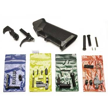 LR308 Lower Parts Kit by CMMG. Comes with black plastic grip.