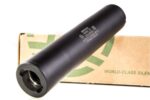 Crafted with sturdy materials, the Gemtech Shield hosts a titanium baffle stack with a reinforced Inconel blast baffle. This combination creates a lightweight (16.3 ounces) suppressor, but maintains its durability, which is evident with its full-auto rating and short-barreled rifle use. With so many outstanding traits—including suppression of 32 dB—why not grab one for your next big hunt?