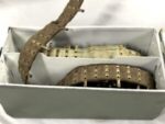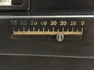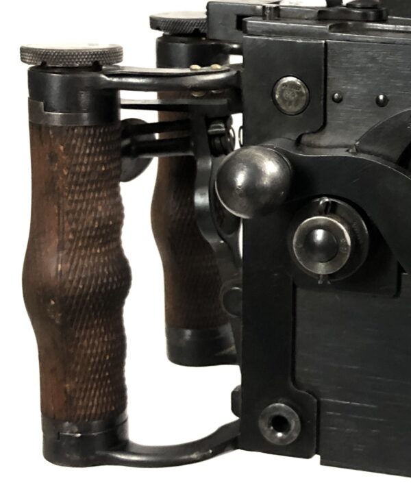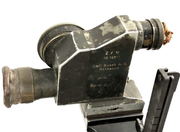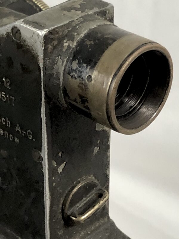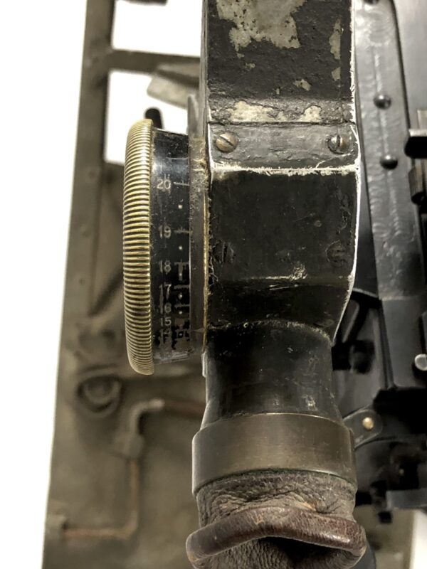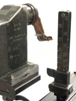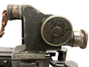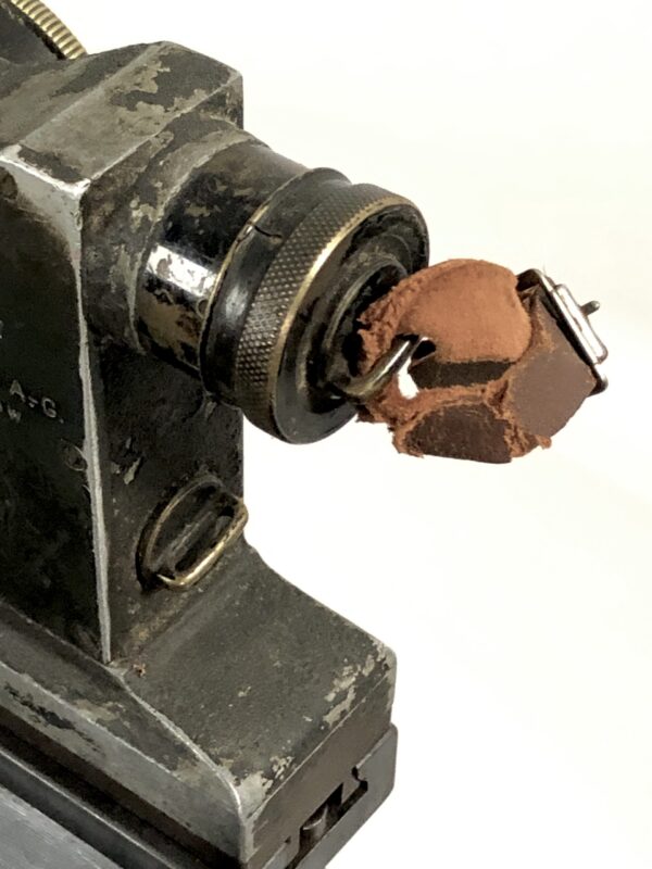 The sled itself is in excellent functional condition, but does not some cosmetic flaws in the painted finish, as well as some minor corrosion marks on the unfinished tools. The included prism sight is also in excellent mechanical condition, with only minor, period-correct cosmetic marks in the finish. The small pieces of leather that make up the end cap and eye piece are intact, but have no malleability left, and for all intents and purposes are without flex.