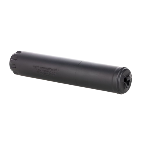 The Griffin Armament Recce 7 silencer offers increased suppression while attaining full-auto rated status. How? Using their patented ECO-FLOW baffles. Employing a precision Taper Mount EZ Brake—which is included with the purchase of the suppressor—this can only adds 5” to the host firearm. Moreover, the Recce 7 provides minimal and repeatable point-of-impact (POI) shift without adding much extra weight and length. If looking for a durable and convenient 7.62mm unit, this is it!