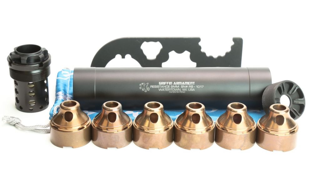 Moreover, the Resistance 9 is a user-serviceable option, allowing for more time to be spent actually shooting at the shooting range. Crafted with an aluminum tube and heat-treated stainless steel baffles that include anti-rotation features, this silencer ensures maximum strength and sound suppression. This suppressor also features Griffin’s patented ECO-FLOW™ baffle technology. The provided takedown tools allow the user simple disassembly for maintenance, keeping the Resistance 9 stealth and sleek… Not to mention the envy of other shooters.