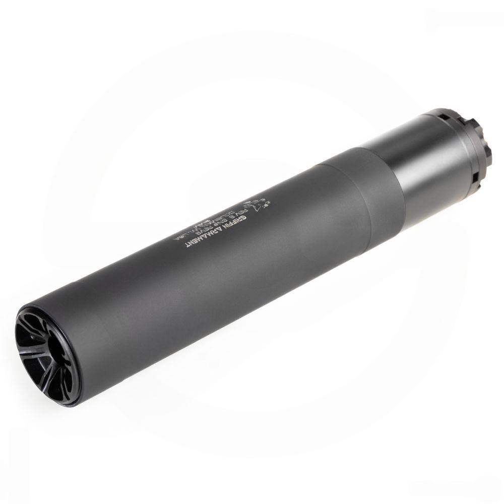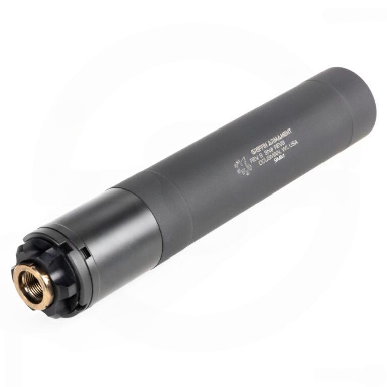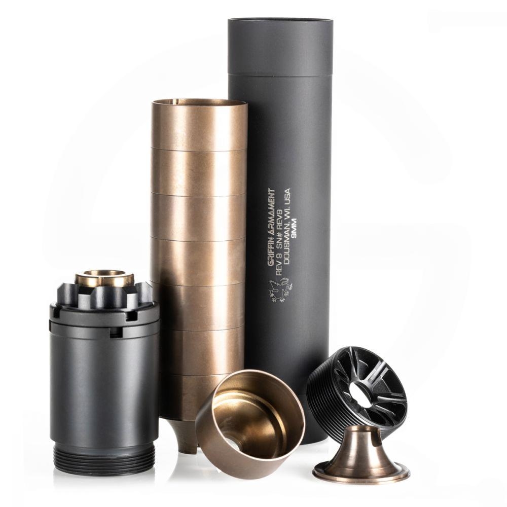 The Griffin Armament Revolution 9 is a full-featured, configurable, and modular suppressor with excellent sound performance, durability, and greater versatility than many pistol silencers on the market today. For users who want excellent performance from a dedicated 9mm can, the Griffin Revolution 9 provides the best of both worlds. Its modular length makes it perfect at the range – as well as being a compact ‘nightstand’ suppressor. It’s like getting two suppressors in one, with only one tax stamp!