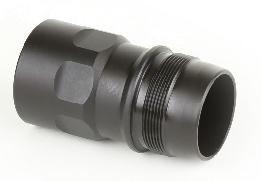 The Optimus Micro Taper Mount Interface provides a method of mounting any Griffin Taper Mount Muzzle device to the Optimus Micro Suppressor. All varieties both long and short and all thread pitches fit. This Part is made exclusively for the Optimus Micro and will not fit any other Griffin Suppressor.