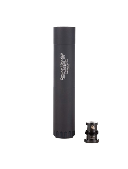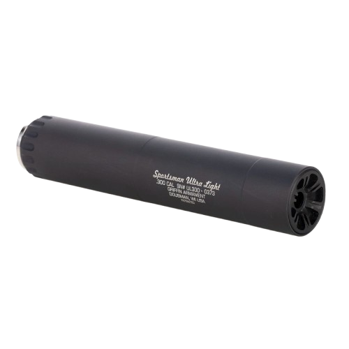 The inventive minds at Griffin Armament expanded on their successful Sportsman series of silencers with the Griffin Sportsman Ultra Light 300. Weighing a light 11.3 ounces and measuring a mere 7.9”, the Sportsman Ultra Light 300 provides a maneuverable and impressive suppressed firearm setup. Constructed of stainless steel and aluminum, this Griffin Armament suppressor is rated to .300 Ultra Mag and delivers impressive sound reduction.