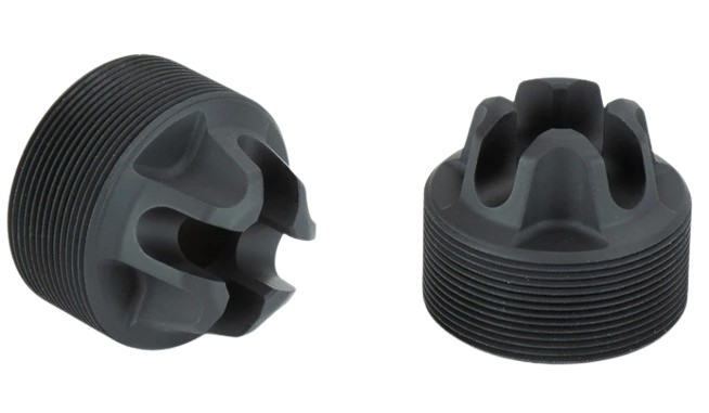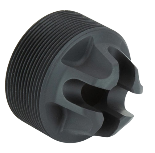 These Griffin end caps were designed and produced to meet a tactical unit request for a spark arresting solution to SMG entry guns. Not only does this cap further reduce muzzle flash but it also can kill sparking when used with a wipe. For when your ops have to be as black as possible add a Stealth Flash Hider end cap to your kit. Billet machined from 7075 T-6 aluminum, these caps are both durable and lightweight. Slotted flash tine geometry also allows users to firmly torque the end cap into the suppressor tube with the use of a generic rod such as a screwdriver or knife blade. These caps fit Griffin Armament Revolution™, Resistance®, and Optimus® 9 silencers. While the Silencerco® Octane and Rugged Suppressors® Obsidian suppressors share the same thread pitch, we cannot guarantee fitment with those models as users have reported inconsistencies in fitment.