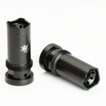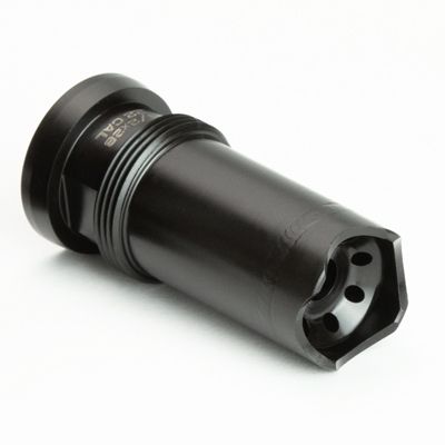 Several years ago Griffin came out with a Linear comp for it’s Gate-LOKâ„¢ series of suppressors.  Shortly afterwards consumers requested a version for their Taper Mount suppressors as well.  Griffin has focused more on muzzle device R&D than any other suppressor manufacturer. Billet machined from 2 pieces of 17-4 Stainless steel, this device is precision TIG welded together to provide the largest possible internal expansion chamber in a Taper Mount. This design would be impossible to manufacture in a single CNC cut work piece. The welded on front cap features gas jet nozzles protected by a wire cutter shroud to focus concussive blast forward and away from the shooter and by standers in the immediate vicinity. CNC machining this device in two pieces is more expensive and time consuming than a single piece device for both machine time and human handling however no corners were cut to produce the optimal design.  For users seeking the lowest concussion muzzle device that can be used either stand alone or with a suppressor this is the unit for them.