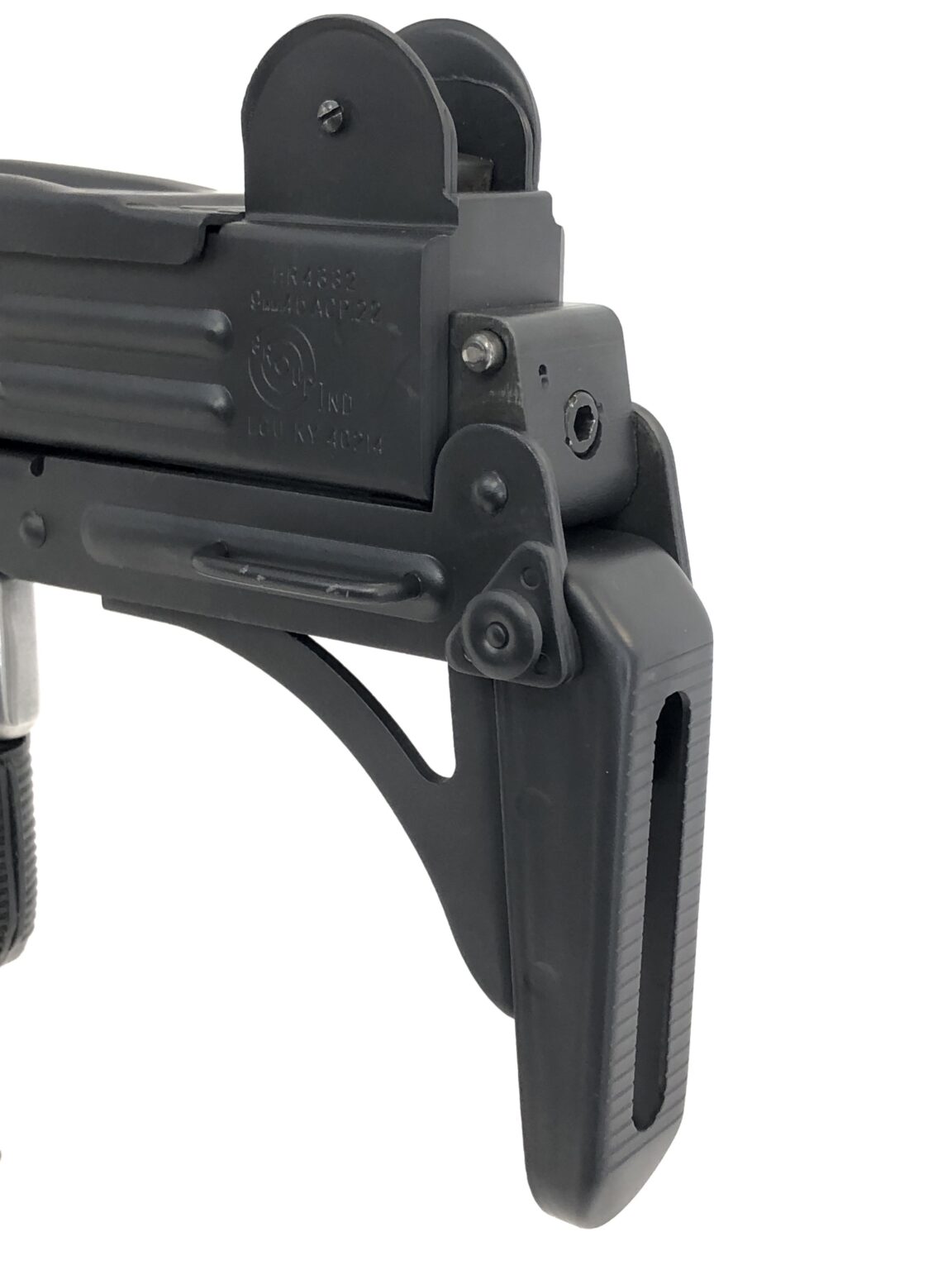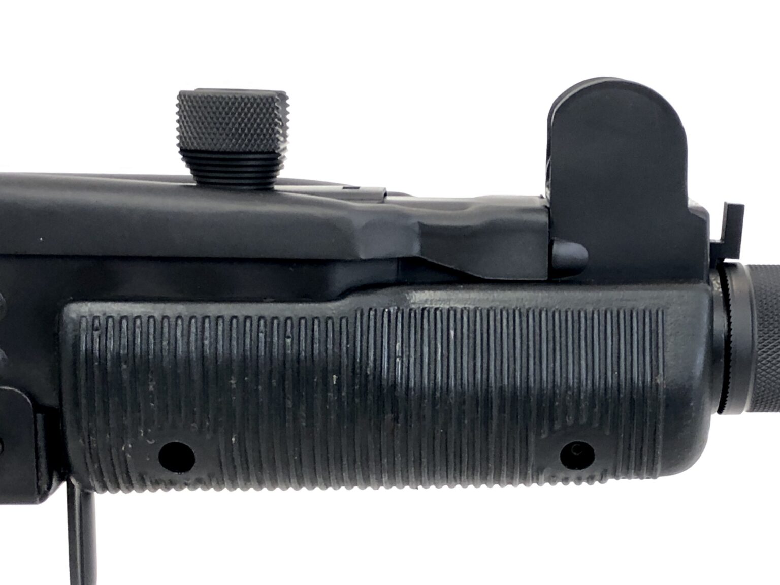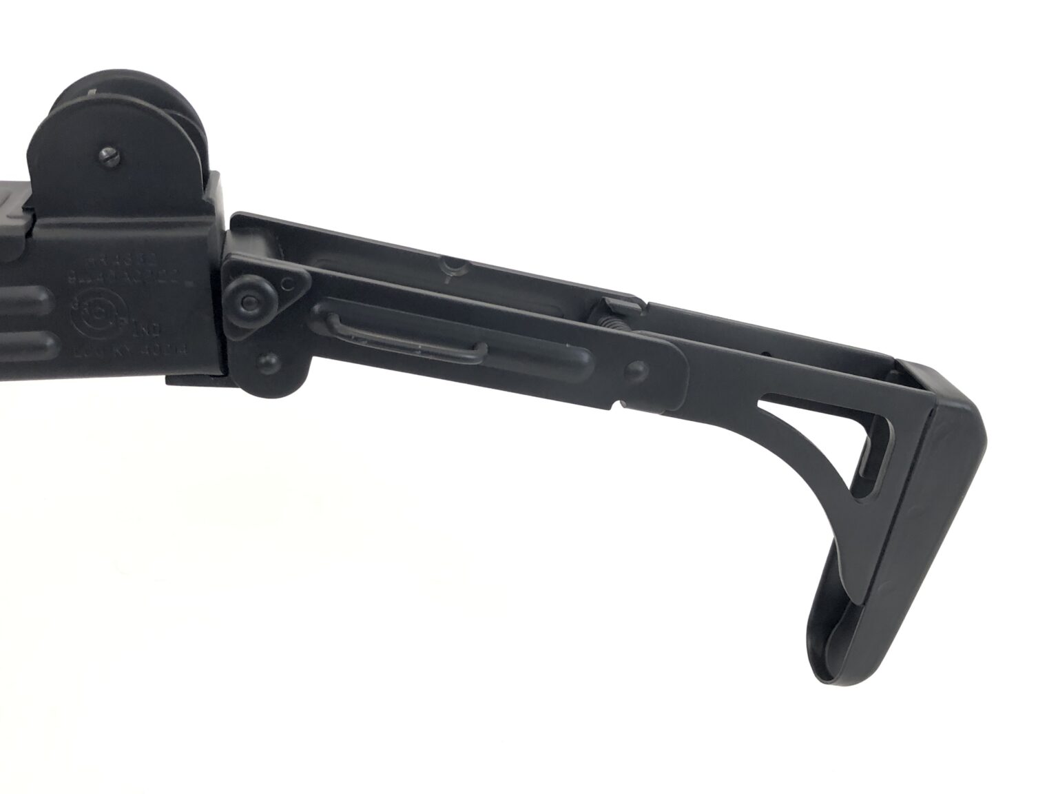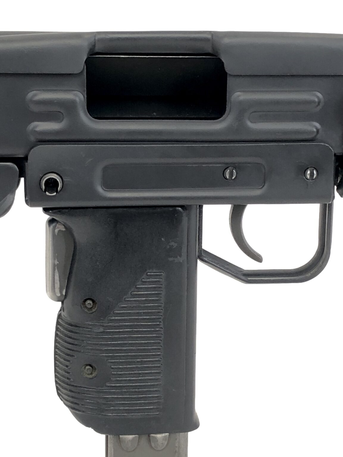 This factory made and registered NFA transferable machine gun was built by Group Industries using their own NFA registered HR4332 UZI submachine gun receiver and original surplus UZI parts. One of the few factory created Uzi models available for civilian ownership in the US, this fantastic version is properly setup in an original SMG configuration with a windage adjustable front sight and the factory under folding stock. It has no restrictor ring, so it accepts standard UZI SMG barrels, and was correctly SMG made with no blocking bar to be removed, as the receiver was made from scratch by Group Industries to be a submachine gun.