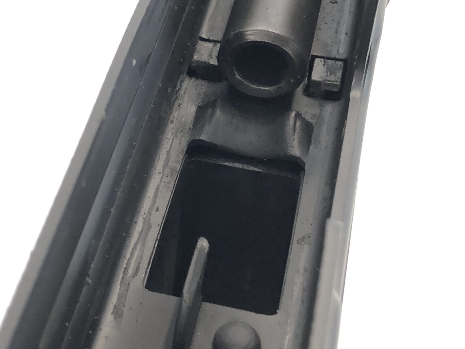 Cosmetically, the parkerization of the weapon is in excellent condition, and notes only very minor handling marks at spots. The dark gray parkerization is beautiful and consistent.. The black polymer furniture notes minor handling marks and surface scratches, but nothing more than cosmetic in nature. The original selector switch, magazine release, and grip safety displays some finish wear at the edges, but are all in excellent functional condition. There is also some finish wear noted on the original barrel exterior, but again, nothing that is more than cosmetic in nature.