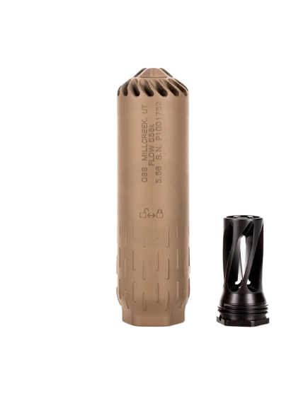 With the FLOW 556K on your your rifle, you’ll have a minimal point of impact shift with the engineered helical cores and cones and the patented mounting Torque Lock System. Using left-hand threads, this 556 suppressor will tighten with every shot. The Torque Lock System aligns using a taper and the Flow-Through™ technology helps seal the can against the QD mounting surface: meaning no carbon will get into the threads. The HUXWRX FLOW 556K FH (Flash Hider) kit includes a flash hider muzzle device, so you’ll be ready to hit the range right out of the box.