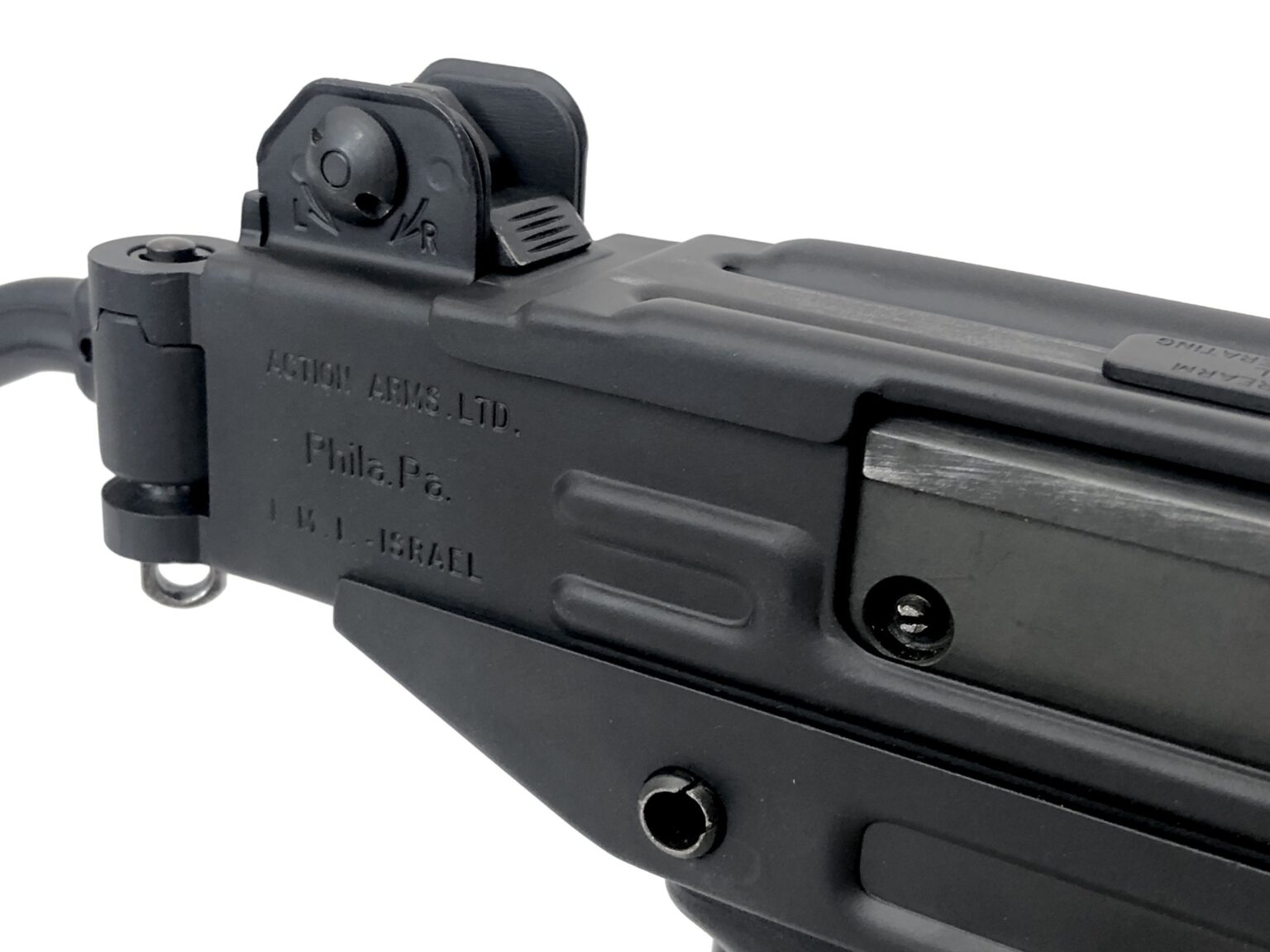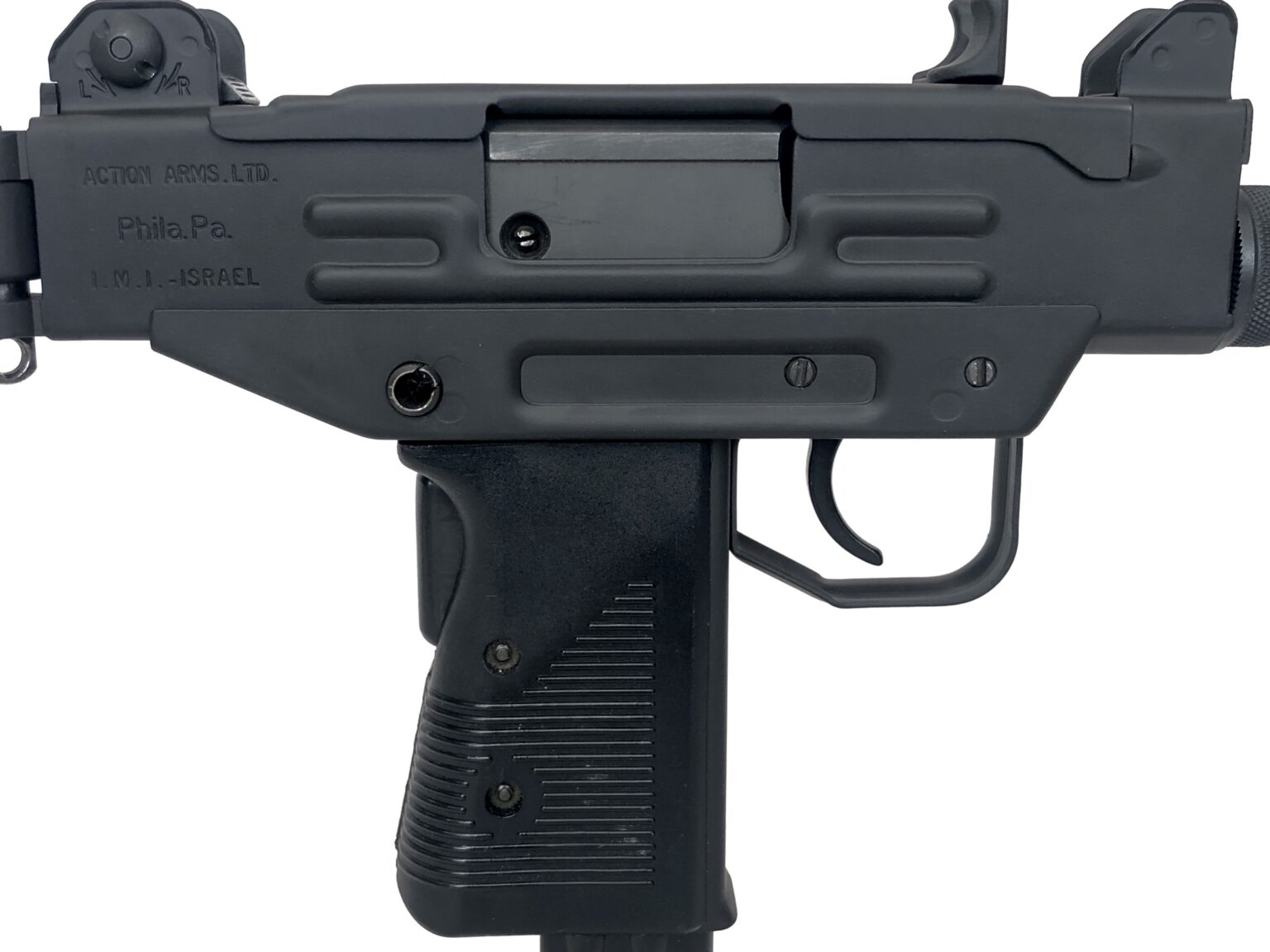 The rarest of all the transferable Uzi variants (as it was only designed and imported into the US for a few months prior to the 1986 deadline for transferable machine gun registration), this Micro Uzi was originally built as a semi-automatic Uzi pistol by IMI in Israel and then imported into the United States by Action Arms of Philadelphia. Once in the US, it was then converted to an open-bolt submachine gun utilizing original IMI Uzi parts and Form 2 registered as a transferable submachine gun.