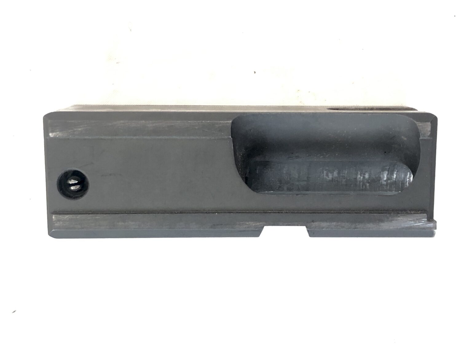Mechanically,  this open bolt transferable machine gun is in excellent condition. It has been test fired and runs extremely well with the fast cyclic rate that the Micro’s are known for and the weapon notes only minor wear from firing use. The fire controls are solid and crisp.  The open SMG bolt notes only minor finish wear at the metal-to-metal contact points, and both the bolt face and the bore remain crisp and clean. Rifling on the bore also remains bright and shiny and the thread pattern is clean and well-defined.