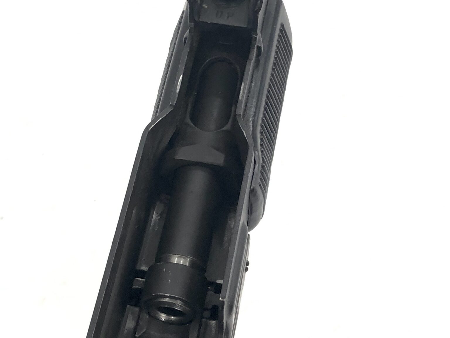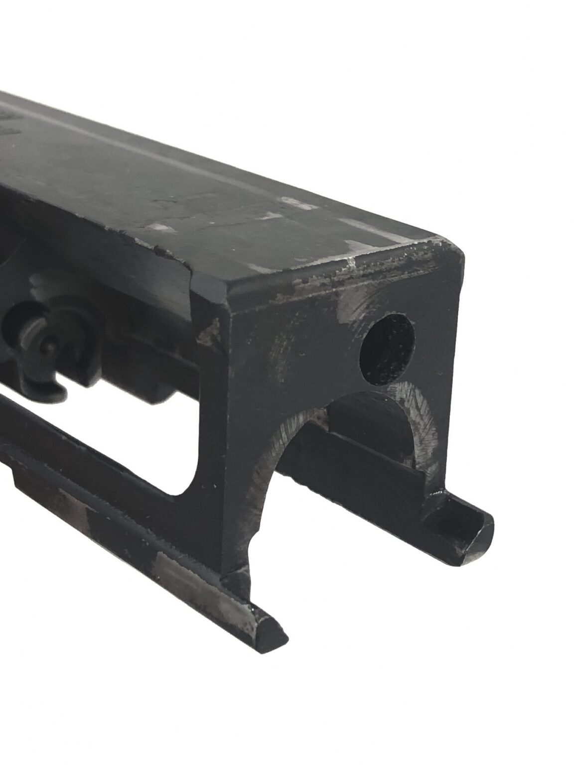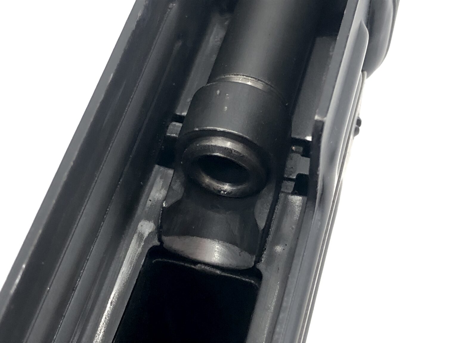 Cosmetically, this host weapon is also in excellent condition, with the original exterior matte black finish noting only very minor light cosmetic handling marks. The weapon notes no dents, dings, cracks, gouges, malformations, etc., in the metalwork. The top cover release displays some minor finish wear, but is only cosmetic in nature. The polymer furniture is also in excellent condition.