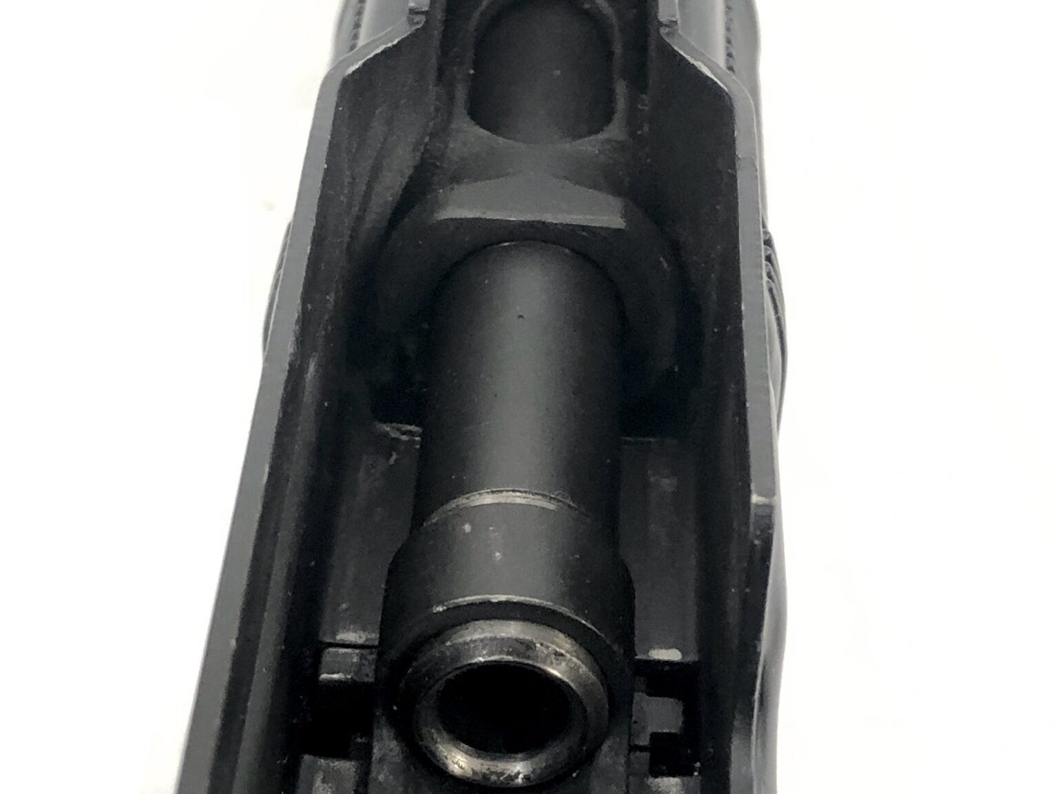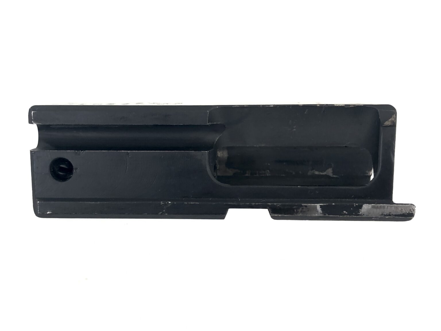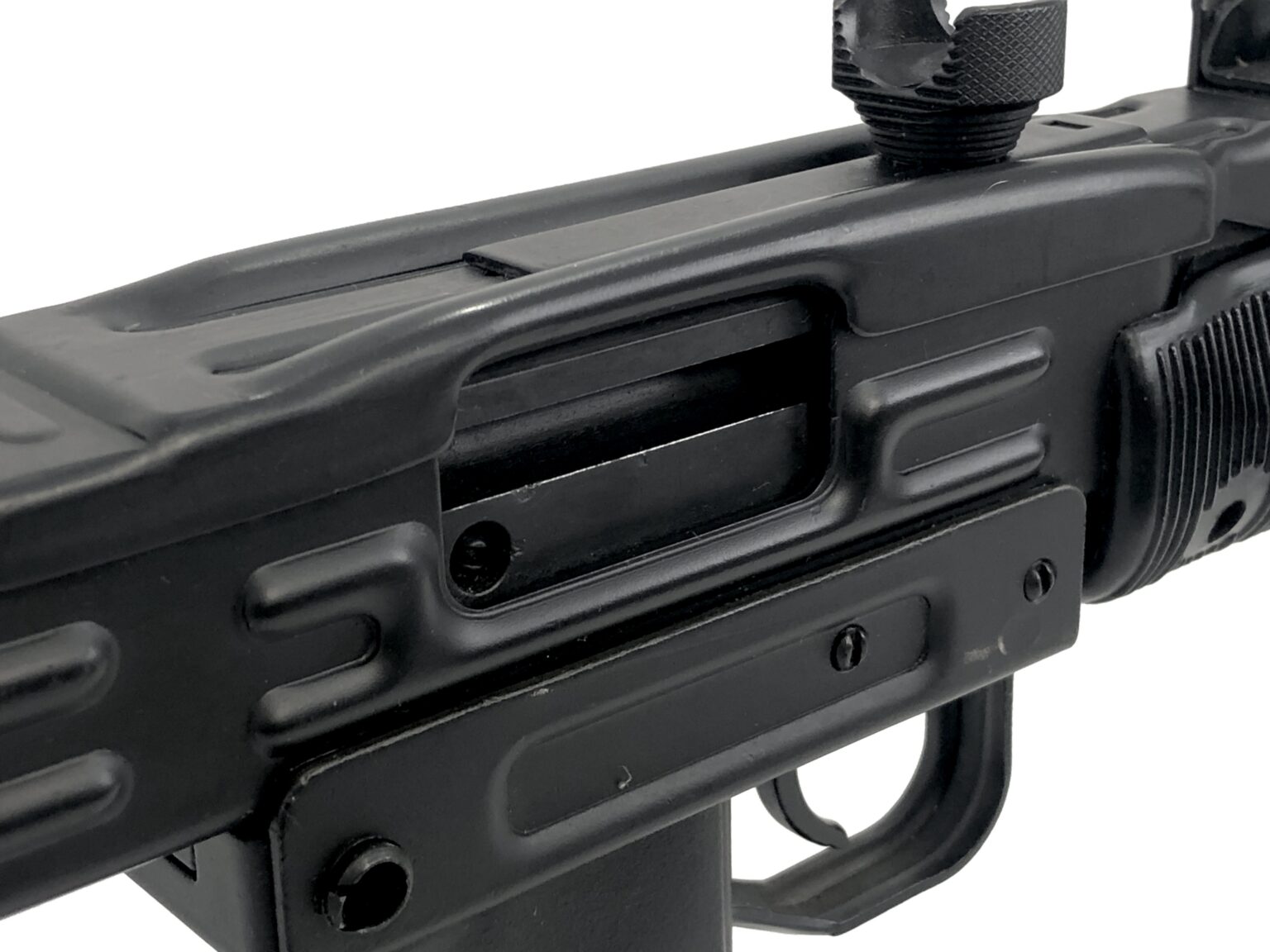 Cosmetically, this host weapon is also in excellent condition, with the original exterior matte black finish noting only very minor light cosmetic handling marks. The weapon notes no dents, dings, cracks, gouges, malformations, etc., in the metalwork. The top cover release displays some minor finish wear, but is only cosmetic in nature. The polymer furniture is also in excellent condition.