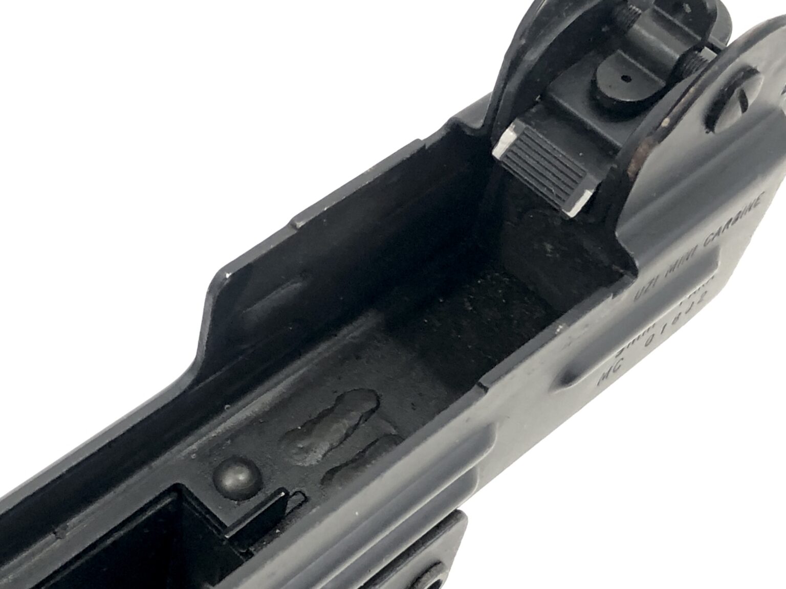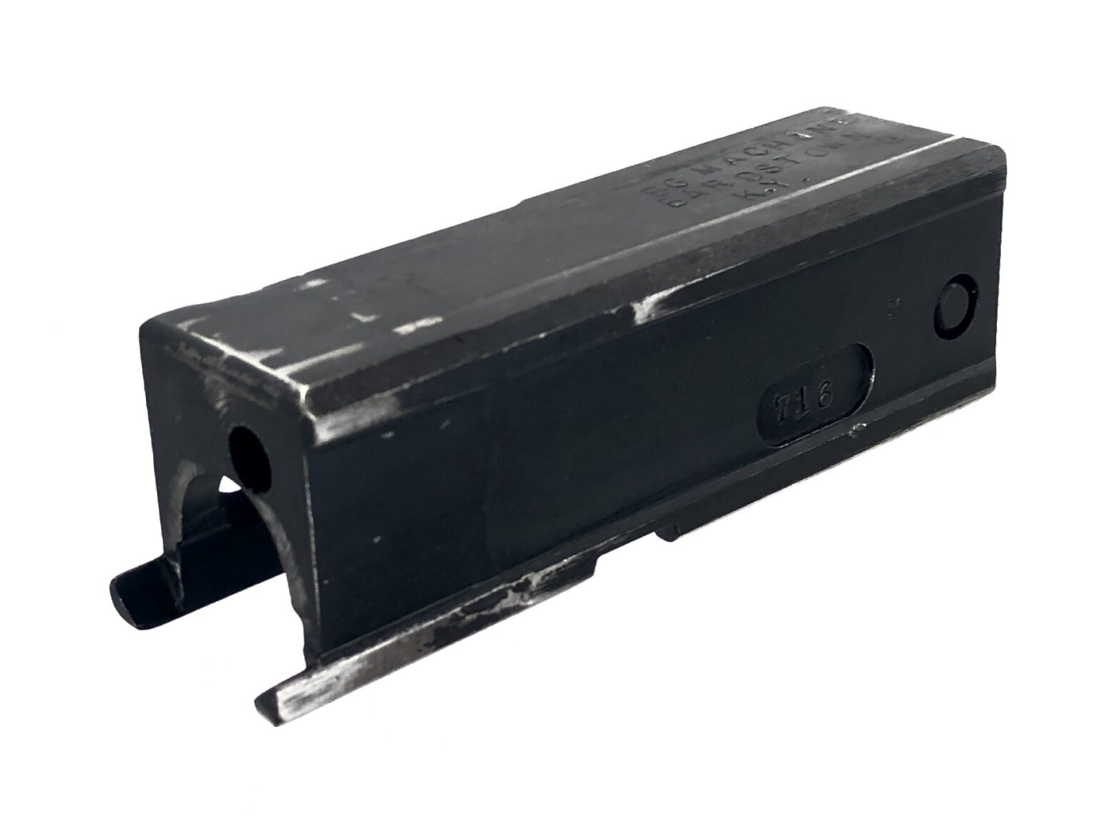 Overall, this transferable machine gun setup is in excellent condition. Mechanically, the weapon notes only normal wear markings on the bolt from firing use. The metalwork of the bolt is solid and intact, with no concerns. The bolt face remains crisp and well defined. The internal fire controls are solid and clean. The bore of the Mini SMG ported barrel remain bright and shiny, with crisp, clean rifling.