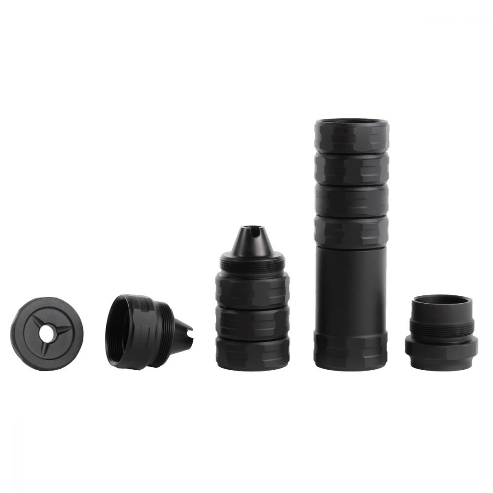 Introducing the all-new JK 155 RCX™ Suppressor designed for rifle suppression and featuring JK Armament’s Tone Technology! Configurable from 3.3” – 8.5”, choose the length and sound suppression that is right for you. Weighing in at a mere 3.6oz in micro configuration the compact system keeps the weight down or stack it up for maximum suppression. Threaded in HUB industry-standard 1.375-24 for maximum compatibility. No specialized tools are needed. This item comes backed by JK Arms Unlimited Unconditional Lifetime Warranty!