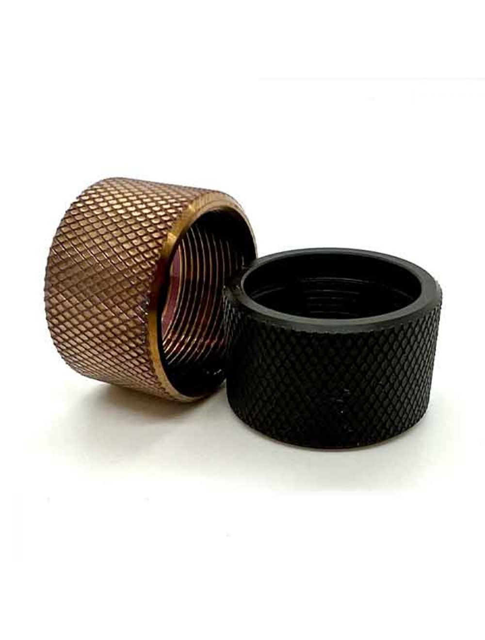 This is a knurled thread protector made from 17-4 stainless steel that fits the ops 12, aem and OCM pattern muzzle devices. It will also fit the OTB, OTB-MB/FH, PTB and MWA 1 piece adapters. Available in black or raw heat treat.