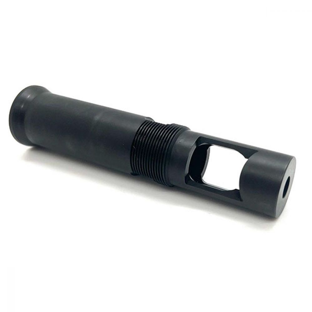 The OCL OTB Muzzle Brake works the same as the standard OTB mount, only with a built in muzzle device – Made from H900 heat treated 17-4 steel this one piece adapter will allow you to mount your OPS 12th model, OCM5 or AEM5 to ANY barrel with 1/2×28 threads that is .75 or less OD and a minimum of 2.05 of exposed barrel measured from the shoulder.