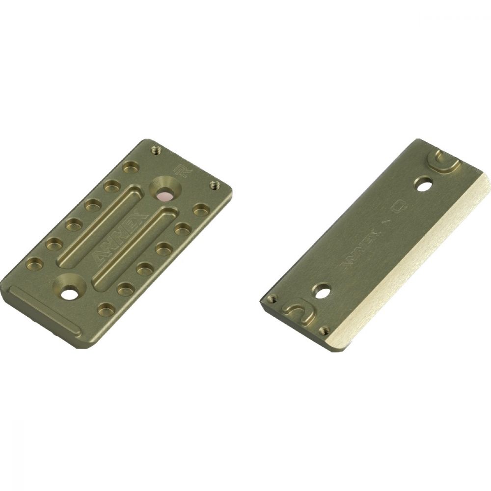 Machined to the exacting specifications of the Really Right Stuff ARCA-SWISS dovetail standard, the ANNEX Arca-Swiss to Q-Sert adapter rails have integrated hard-stops at the end of the rails to prevent the rifle from sliding off the ball-head / tripod, integrated threaded holes to install your own (optional) stop-screws at the front of the rail, and are made from aerospace-grade 7075 aluminum finished with dye-free clear hard anodizing.