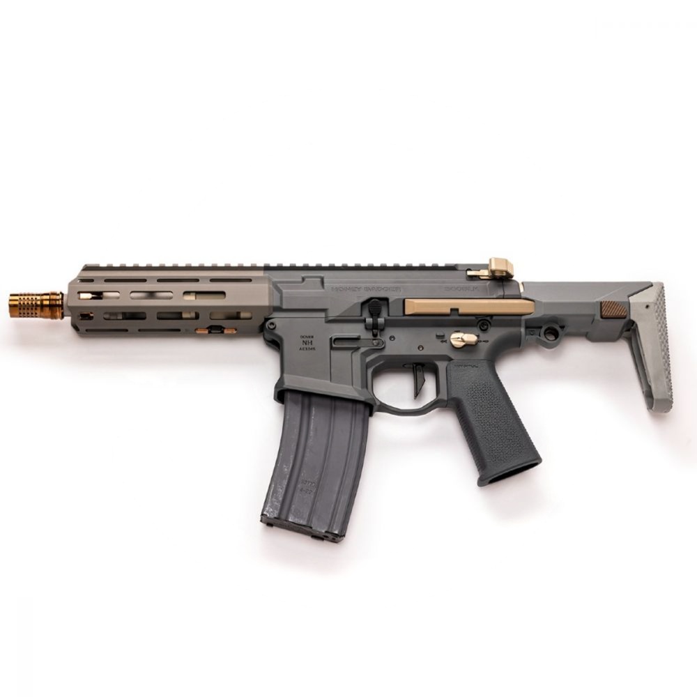 Enter the Honey Badger by Q. At first glance, this Honey Badger appears to be the same as the unreleased original. Q focused on taking the iconic ‘Badger to the next level and improved upon every technical aspect of the first-generation design. From the gas system to the trigger, and telescoping stock – HB 2.0 does not disappoint.
