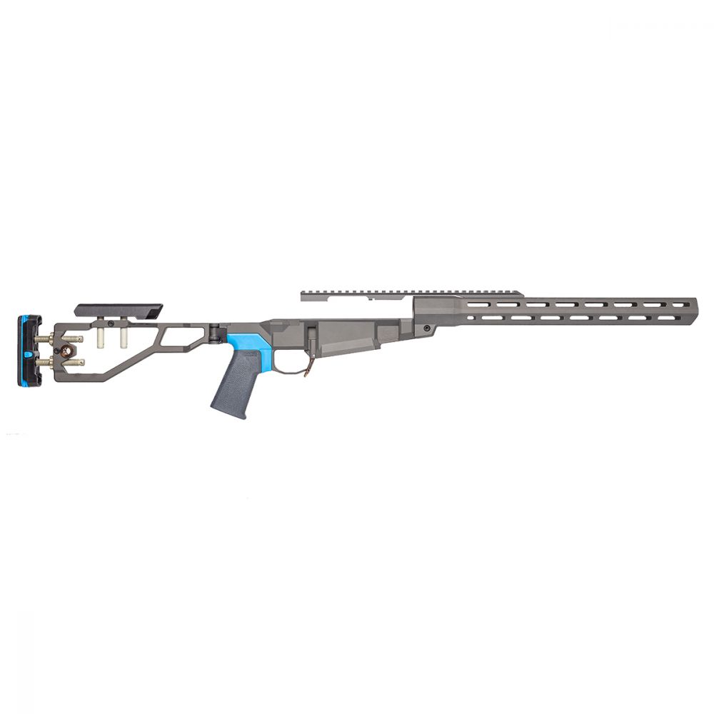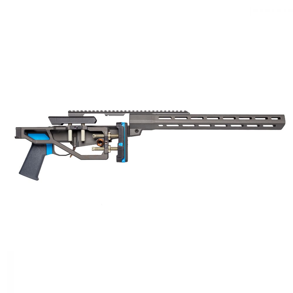 Looking to give your bolt action rifle more action? Q’s Side Chick might be exactly what you’re lusting for. Revolutionizing hunting rifles as we know it, The Side Chick offers a modular precision chassis for actions using the Remington 700 skeleton. Inspired by the chassis of Q’s The Fix, The Side Chick is a lightweight chassis with an adjustable folding stock, removable top rail, free-floating MLOK handguard, and the ability to swap AR-15 style grips. Dress The Side Chick up however you want with your receiver and barrel from your old short action, or purchase new accoutrements; either way, you’ll be proud to sling it over your shoulder on any range day or hunting trip!