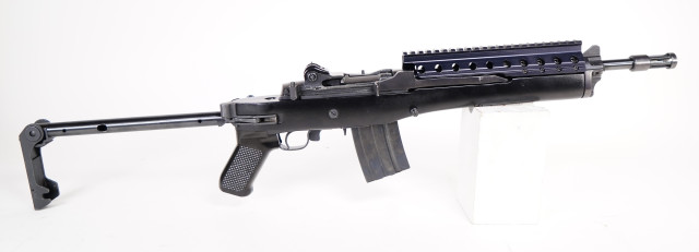 223 REM blued with short barrel and side folding aftermarket stock. One 20 round mag is included