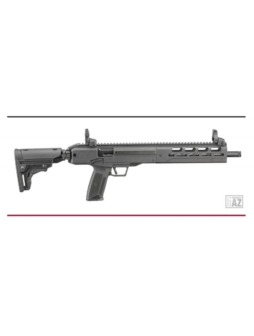 This standard model Ruger 19300 features a threaded barrel, reversible/side-folding/adjustable stock, and a 20-round magazine. Coming in at just under 6 lbs, this lightweight and compact Ruger uses the same steel magazines and ergonomic controls as the Ruger-5.7 pistol. The folding stock and collapsable sights are perfect for compact storage while also being compatible with both AR-pattern and Picatinny rail-mounted aftermarket accessory stocks. The Ruger 19300 also utilizes their safe, reliable and proven Secure Action fire-control system that combines a protected internal hammer with a bladed-safety trigger. The trigger has a short, smooth pull, clean break, and positive reset.
