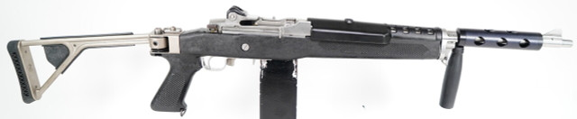 This is a registered receiver Ruger Mini-14. It was converted before 1986 making this fully transferable  Since this is a converted gun, there is no 3rd burst mech.  Comes with folding stock and 2 30 round mags.