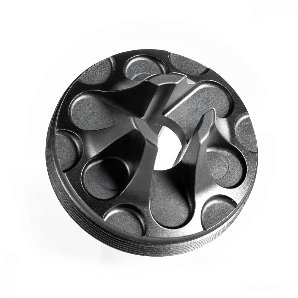 The Rugged Flash Hider Front Cap – 7.62 is compatible with the Rugged Radiant762, Surge762, Razor762 and Micro30.