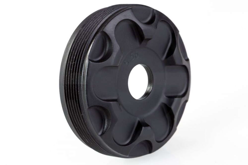 A replacement end cap for the Rugged Surge 7.62 that tightens the bore aperature down for increased performance when running on 5.56/.223 platforms.