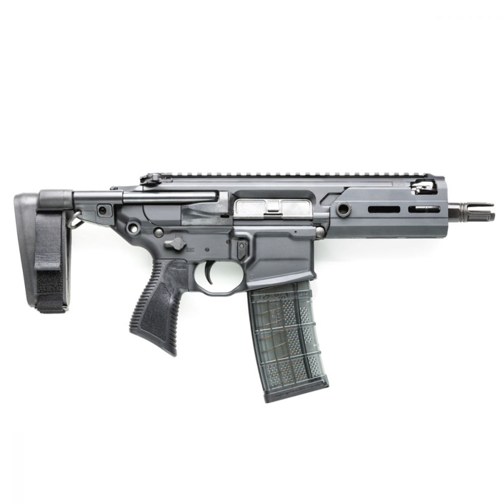 The conception of the SIG MCX Rattler PSB roots from its parent MCX, but is the shorter, lighter, and more compact version. Originally designed for elite military personnel and sporting a conservative 5.5-inch barrel length, this AR-platform is recognized for its compact stature and ultimate maneuverability. The MCX Rattler PSB is also gaining a reputation for being the ideal compact personal defense weapon and is notorious for its discreet build. Sporting a 3-position collapsing pistol brace also makes for easy compact concealment and is considered a great choice for quick-moving operators. Whatever your needs, this MCX Rattler PSB is sure to have you covered.