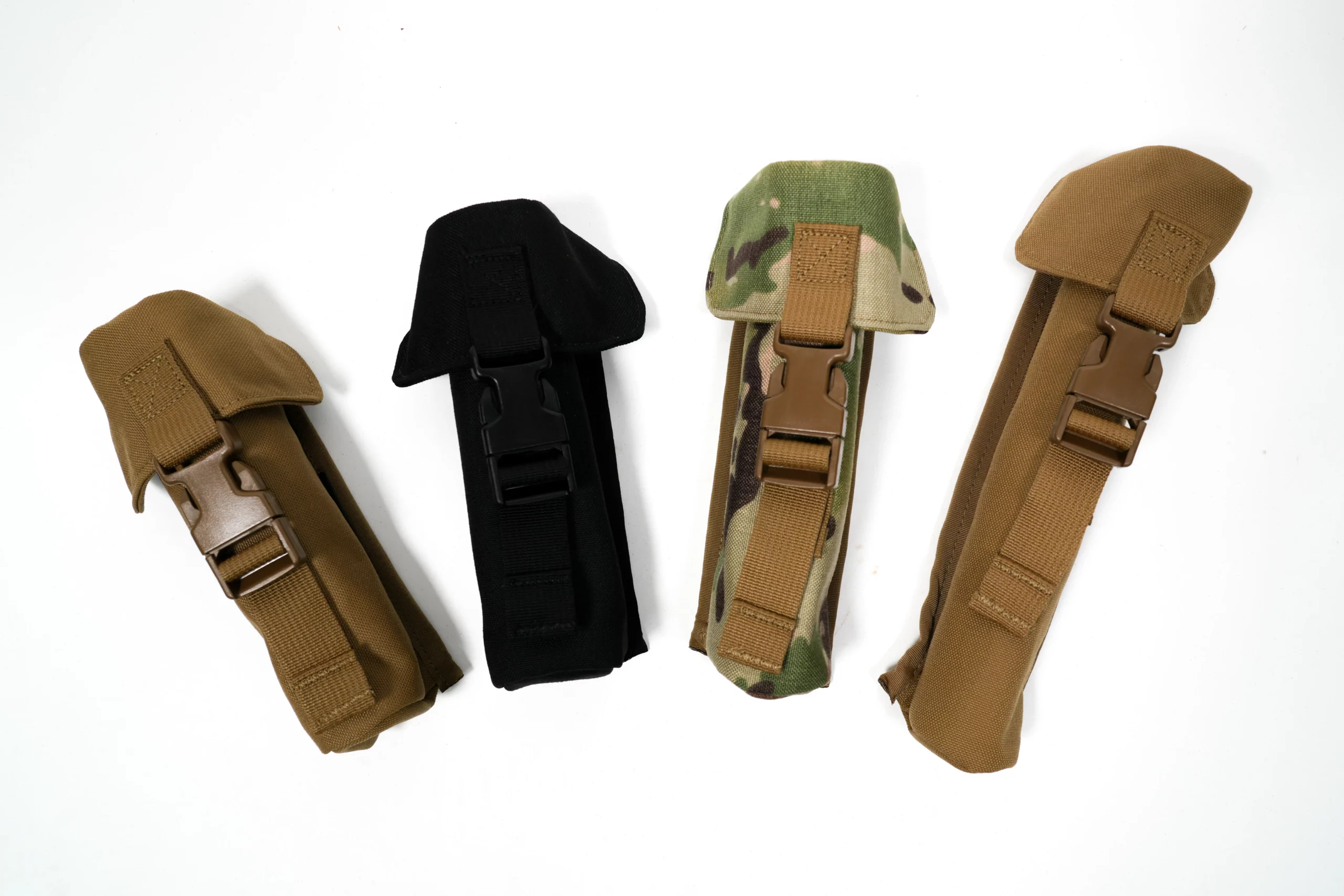 A simple nylon (500D Cordura) pouch with heat resistant liner. These are nothing fancy but they are well built! Drain hole with metal grommet on the bottom, adjustable fastex buckle and MOLLE attachment on the back.