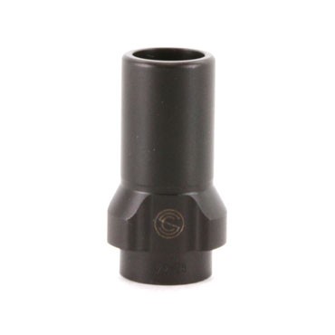 The 9mm SilencerCo 3-Lug barrel adapters are designed around the iconic HK standard. They are compatible with 3-lug mounts made to common industry specifications, including both the original SilencerCo 3-Lug Mount and the newer Low Profile 3-Lug Mount.  The 1/2×28 9mm version adds roughly .8″ to the barrel, and has an overall length of 1.4.” The 5/8×24 variants for both 9mm and 45 are 2.3″ in length adding 1.9″ to the end of the barrel. Additionally, the 5/8×24 variants have wrench flats for ease of installation.