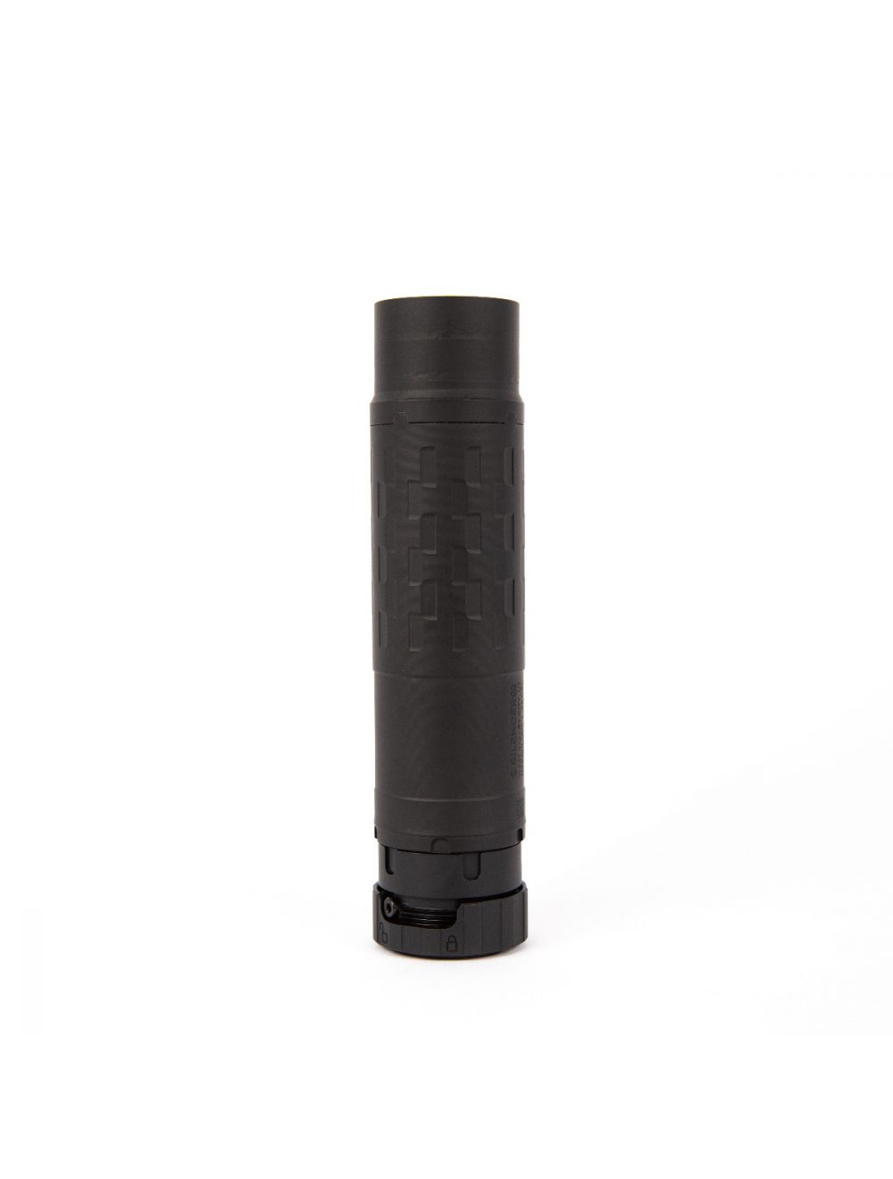 The Hybrid 46M is the natural next step in evolution for the large bore suppressor, the Hybrid 46, providing the same quality suppression performance while innovating on design. It is compatible with almost every firearm platform thanks to its modular functionality and range of possible attachment accessories. In its short configuration without its mount, it measures 12.2 ounces and 5.78 inches. With the front module and front cap, it is a mere 14.9 ounces and 7.72 inches.