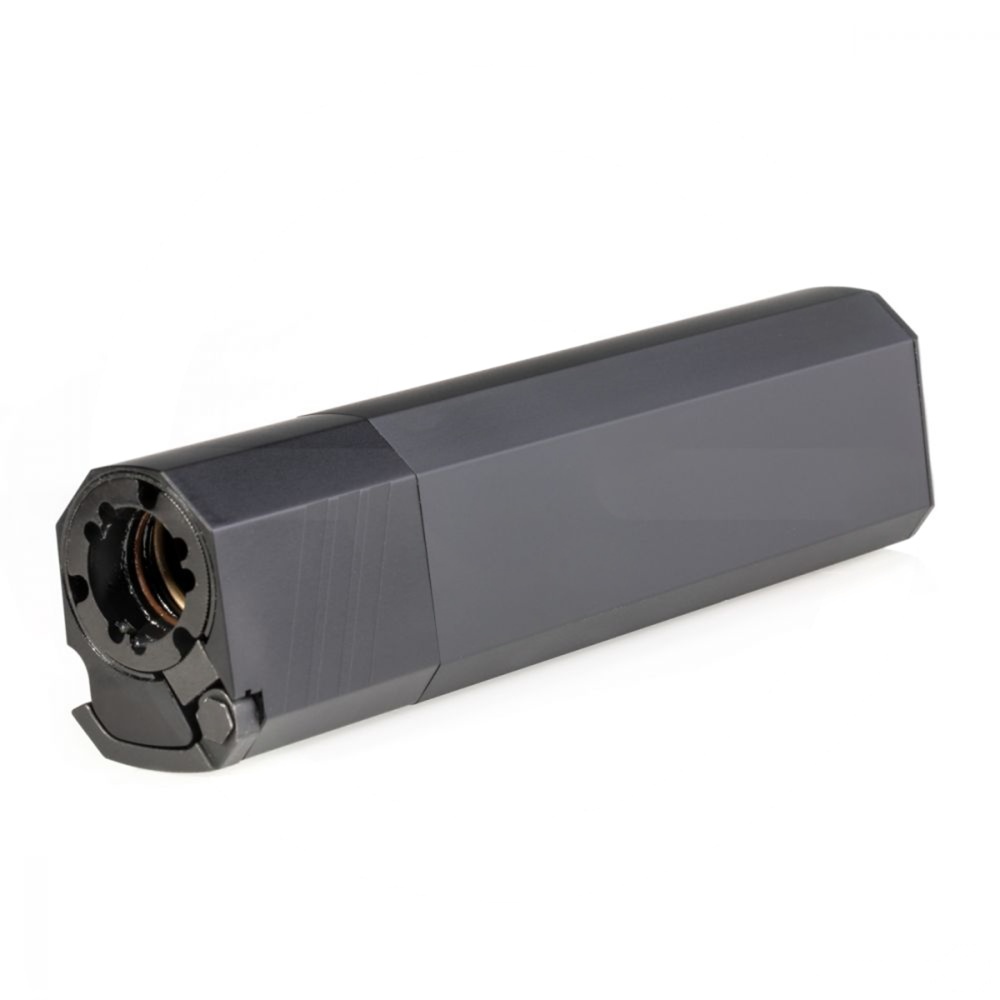 Providing shooters a hearing-safe 127 dB with 9mm ammo, the SilencerCo Osprey 9 is an ideal option in the pistol can category. Constructed with aluminum and stainless steel, this suppressor’s durability is a given. Complementary to its original appearance, the Osprey 9’s weight (9.8 ounces) and length (7”) allow for an enjoyable day at the local gun range. Grab one and hear for yourself.