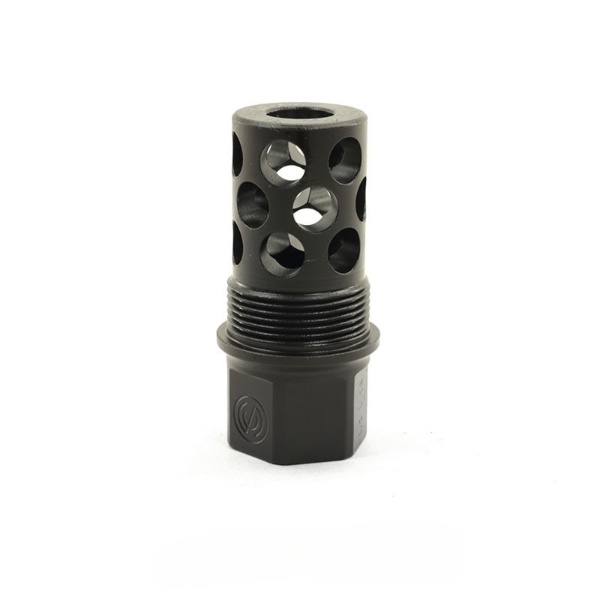 The SilencerCo TOMD (Thread Over Muzzle Device) Compact Radial Brake allows for reduced recoil and easy silencer mounting.  Because it’s omnidirectional, no timing is required.  This makes installation quick and straightforward!  The TOMD Compact Radial Brake is smaller than most would expect, reducing weight and keeping the overall footprint as minimal as possible.  Even though it’s small, it still offers superb recoil reduction.