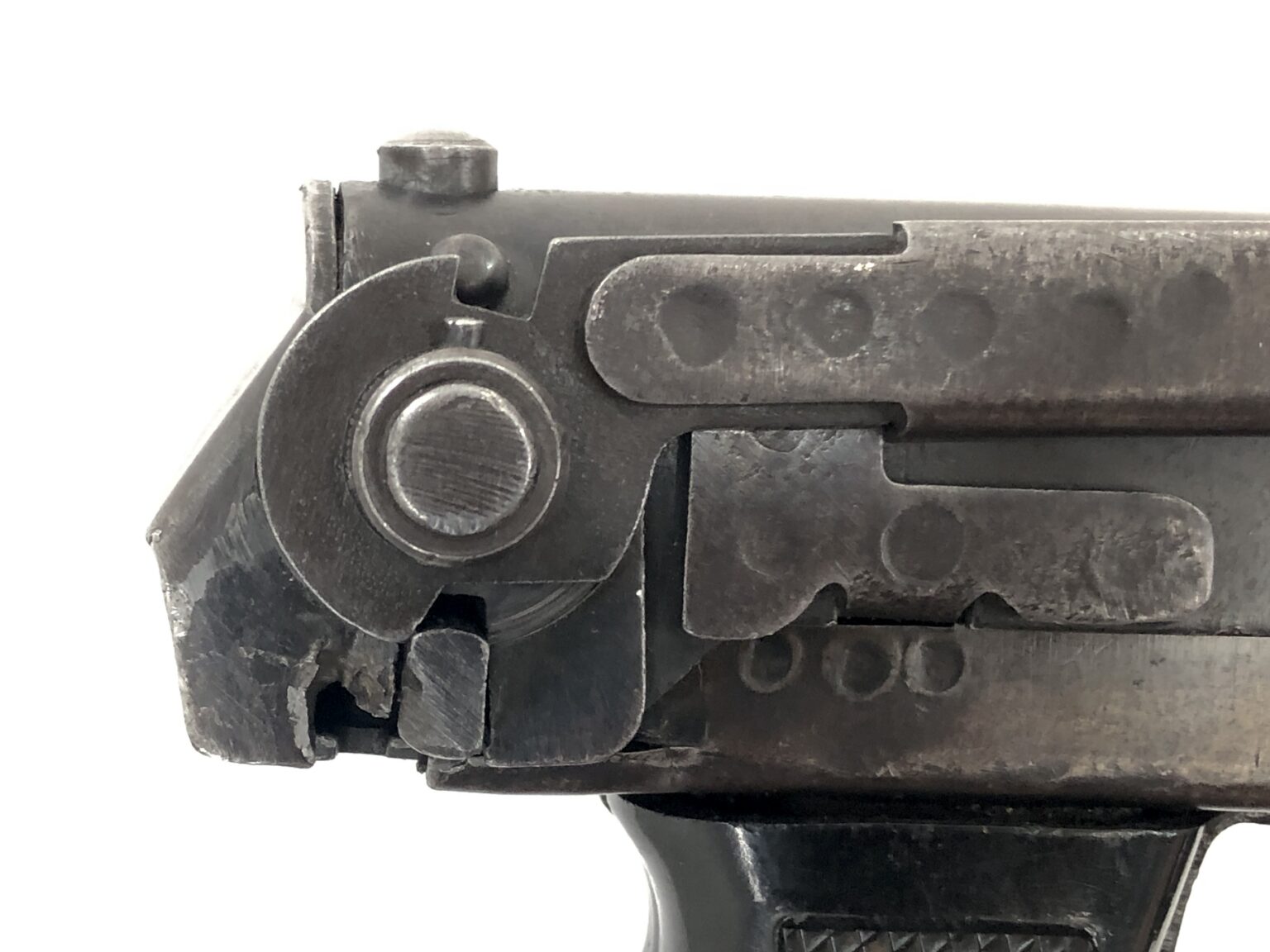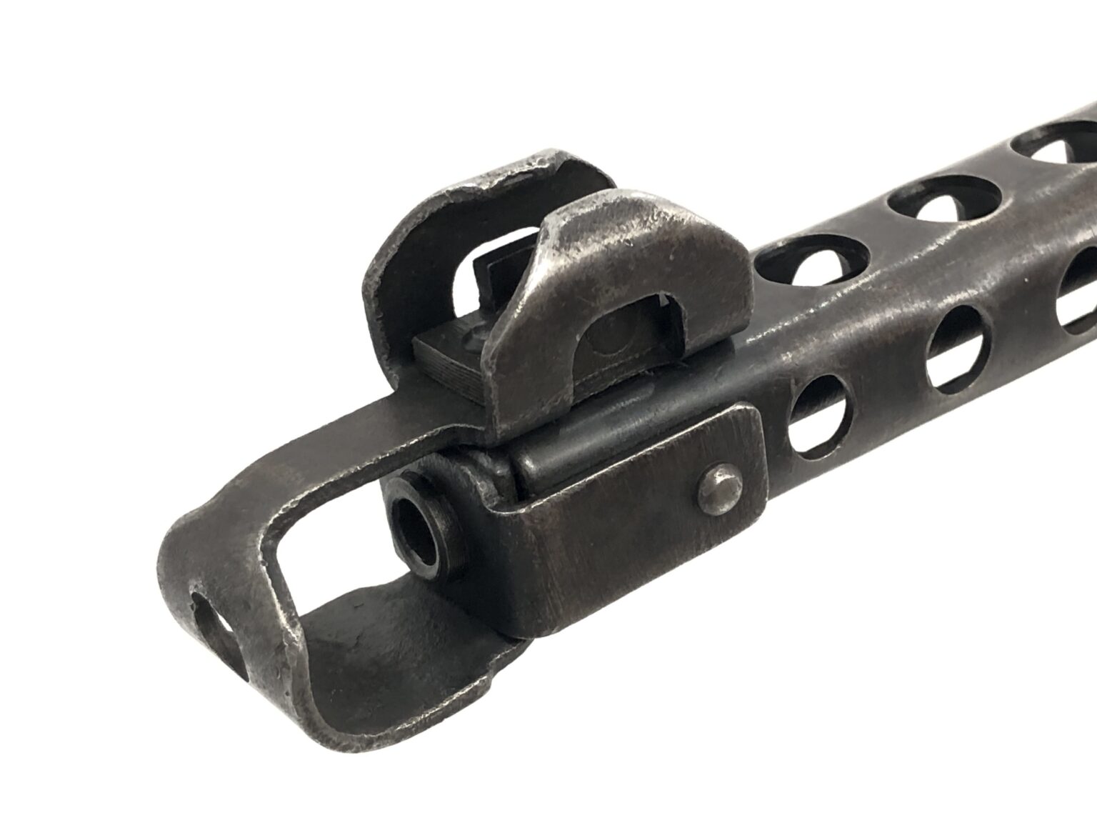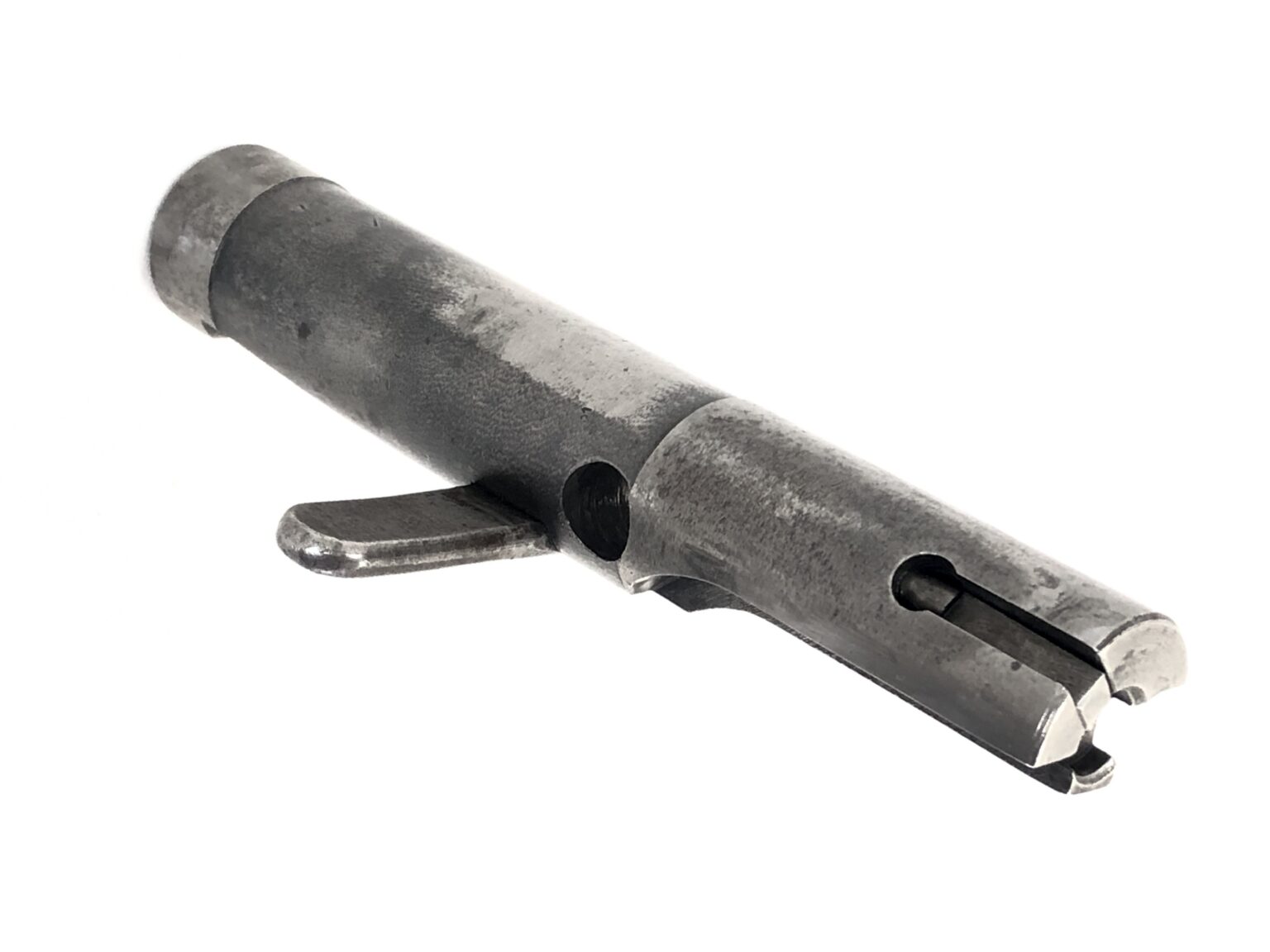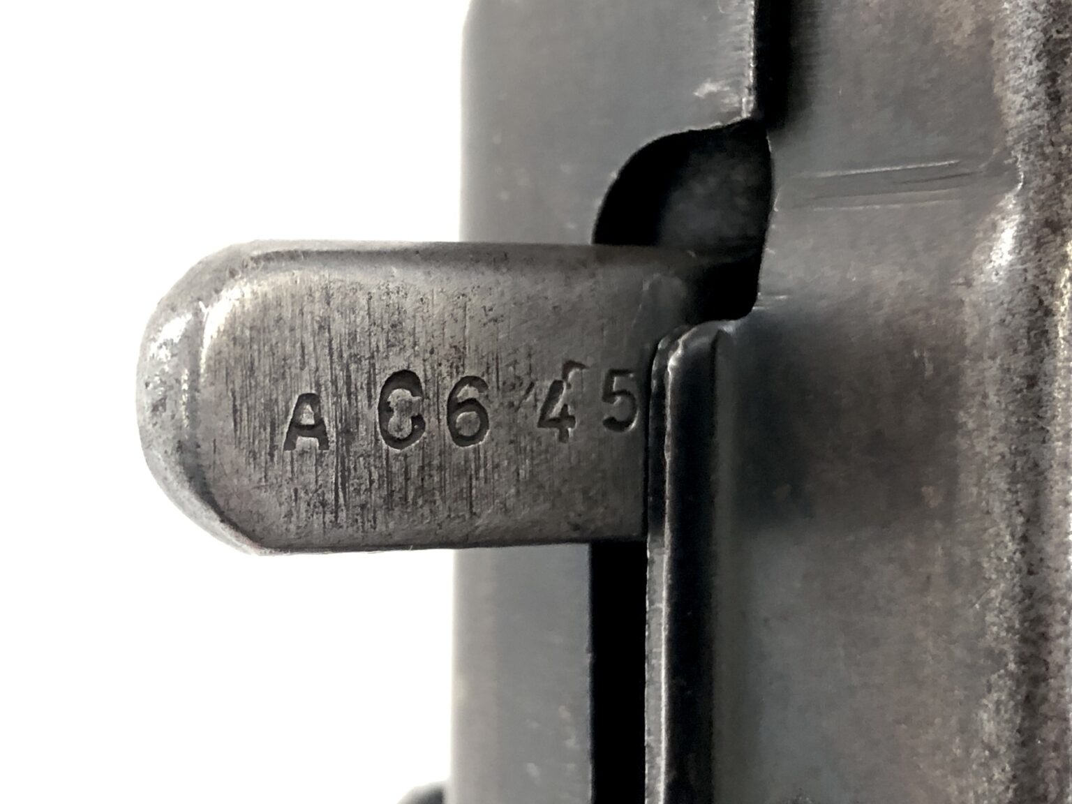 Overall, this weapon is in excellent functional condition. The metalwork notes no dings, dents, cracks, etc. The internals note only minor wear markings. The bolt face remains crisp and clean. The bore is bright and shiny with crisp, clean rifling. The open bolt action remains buttery smooth in operation, with strong spring tension to the operating rod. The rear of the receiver has a small malformation of the sheet steel at the take down lever, but nothing that is more than cosmetic in nature. All folding mechanisms, take down controls, and mechanical systems operate smoothly and appropriately.