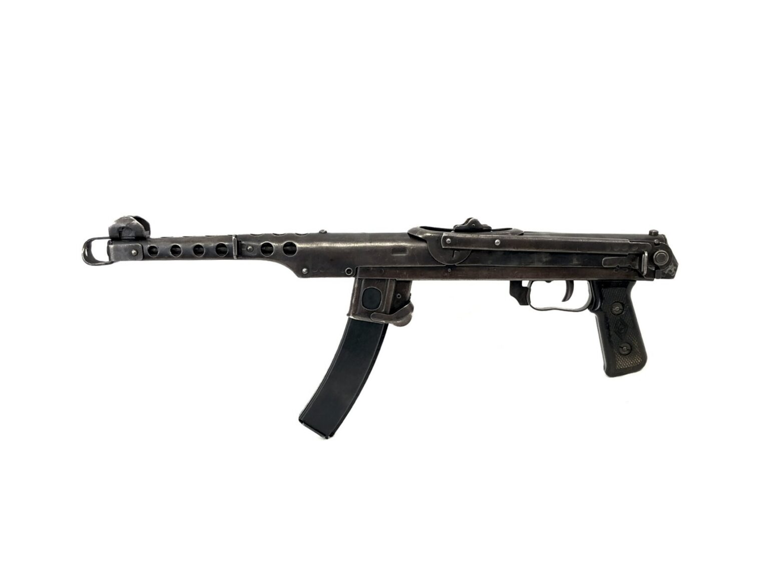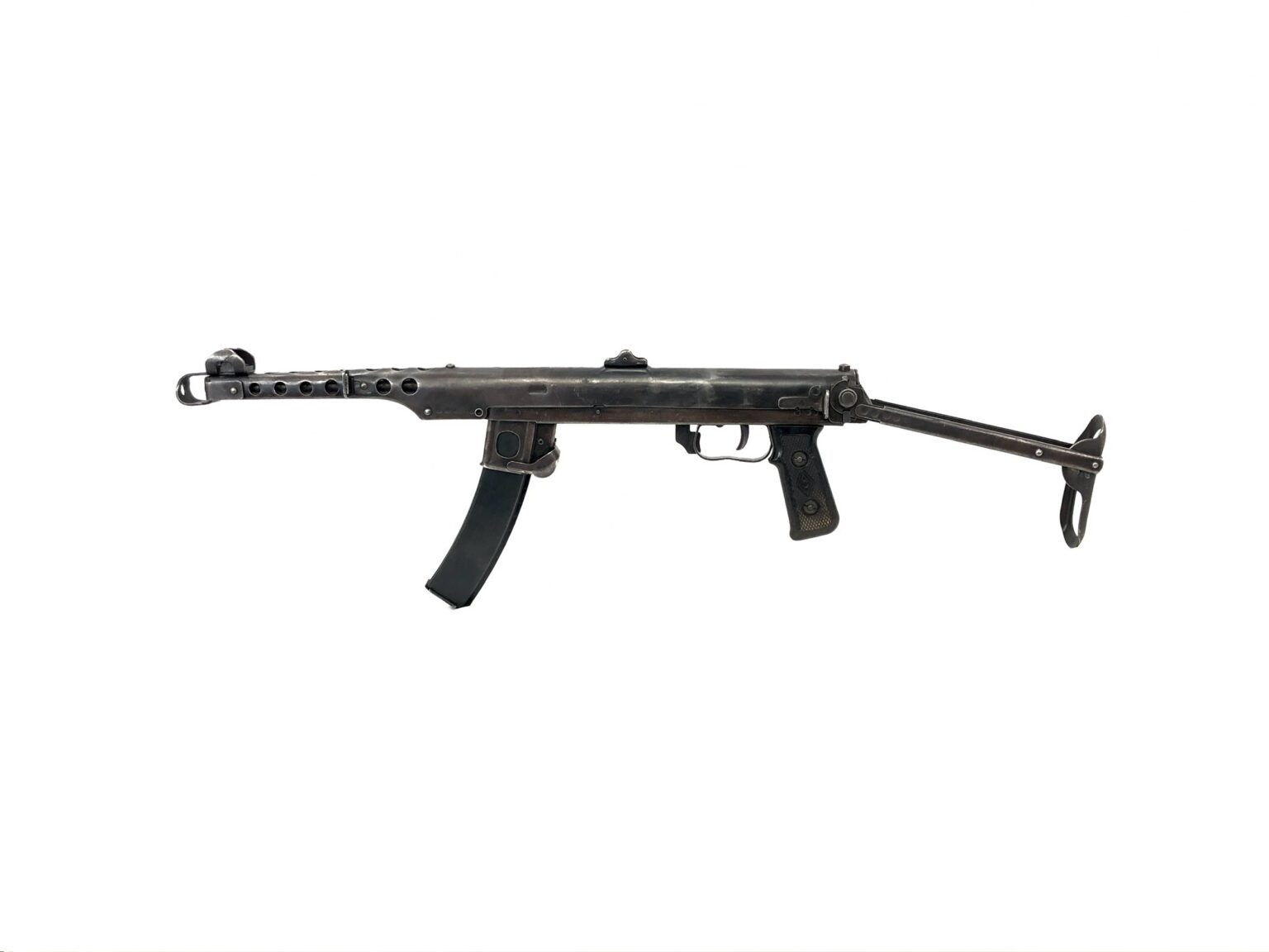Originally produced by the Soviet Union during World War II, the PPSh-43 was intended to be a more affordable, mass-produced version of the Soviet PPSh-41 to allow for the necessary increased production required by the demands of WWII. This stamped steel model was a huge triumph and operational success for the Soviets, as it’s performance on the battlefield quickly became legendary among Soviet submachine guns, mostly due to the increased portability and controllability over the original PPSh-41 design.