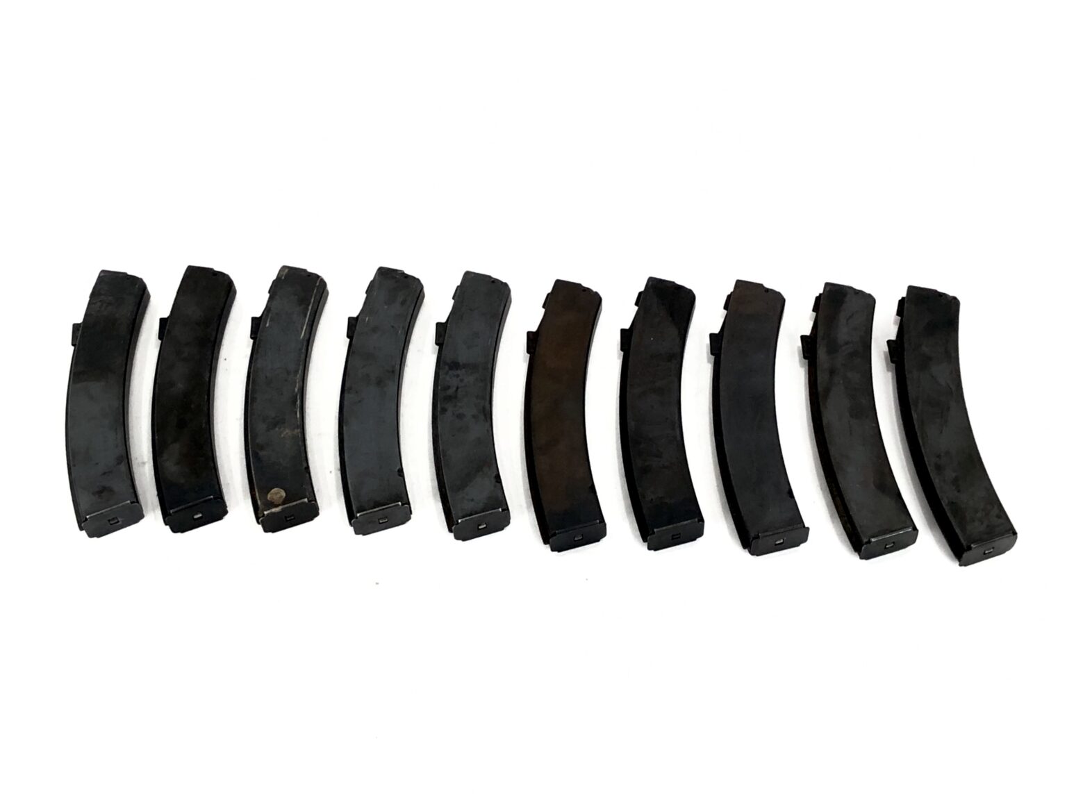 Cosmetically, the exterior bluing of this weapon has aged and patinaed nicely for a close to 80 year old firearm. The originally bluing is still significantly intact, with only minor points of wear through. The metalwork of the weapon has patinaed to an eye-pleasing gray and auburn at observed points of bluing loss. There is no noted corrosion or degradation of the metalwork at any observed spots. Purchase will include a total of 10 original 35rd box magazines.