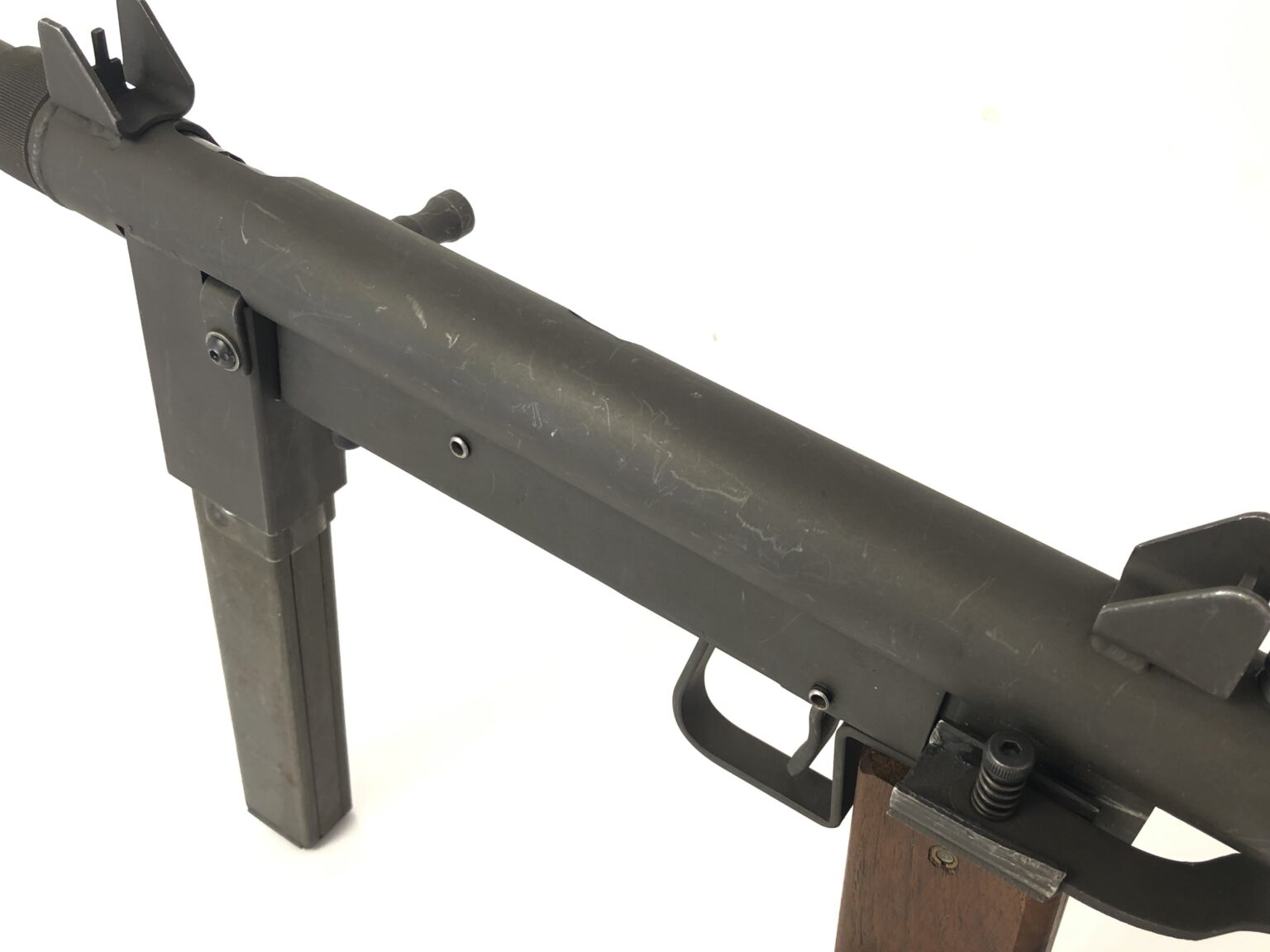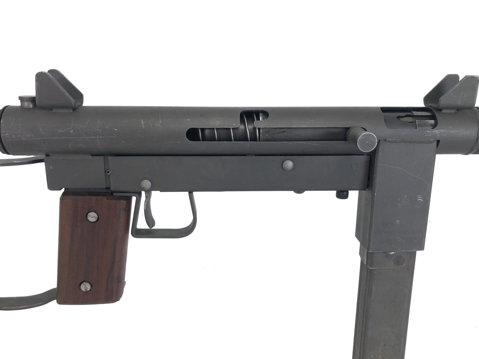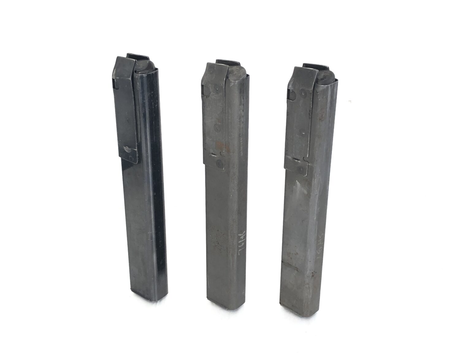Cosmetically, this weapon is in overall very good condition. It does note numerous surface-only handling markings in the exterior parkerization, but no dents, dings, cracks, malformations, etc. that would be of any functional concern. Purchase of these model will also include three 30rd box magazines that have been properly fitted for the 1st Gen Stemple 76/45’s.