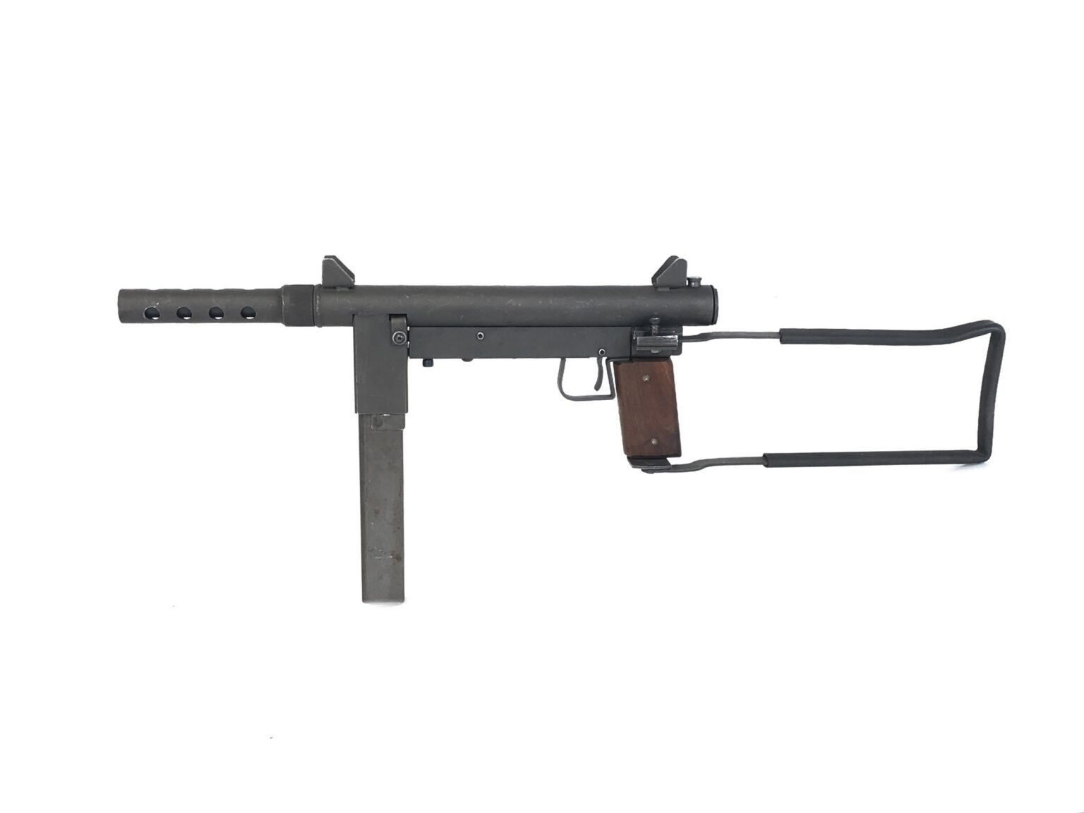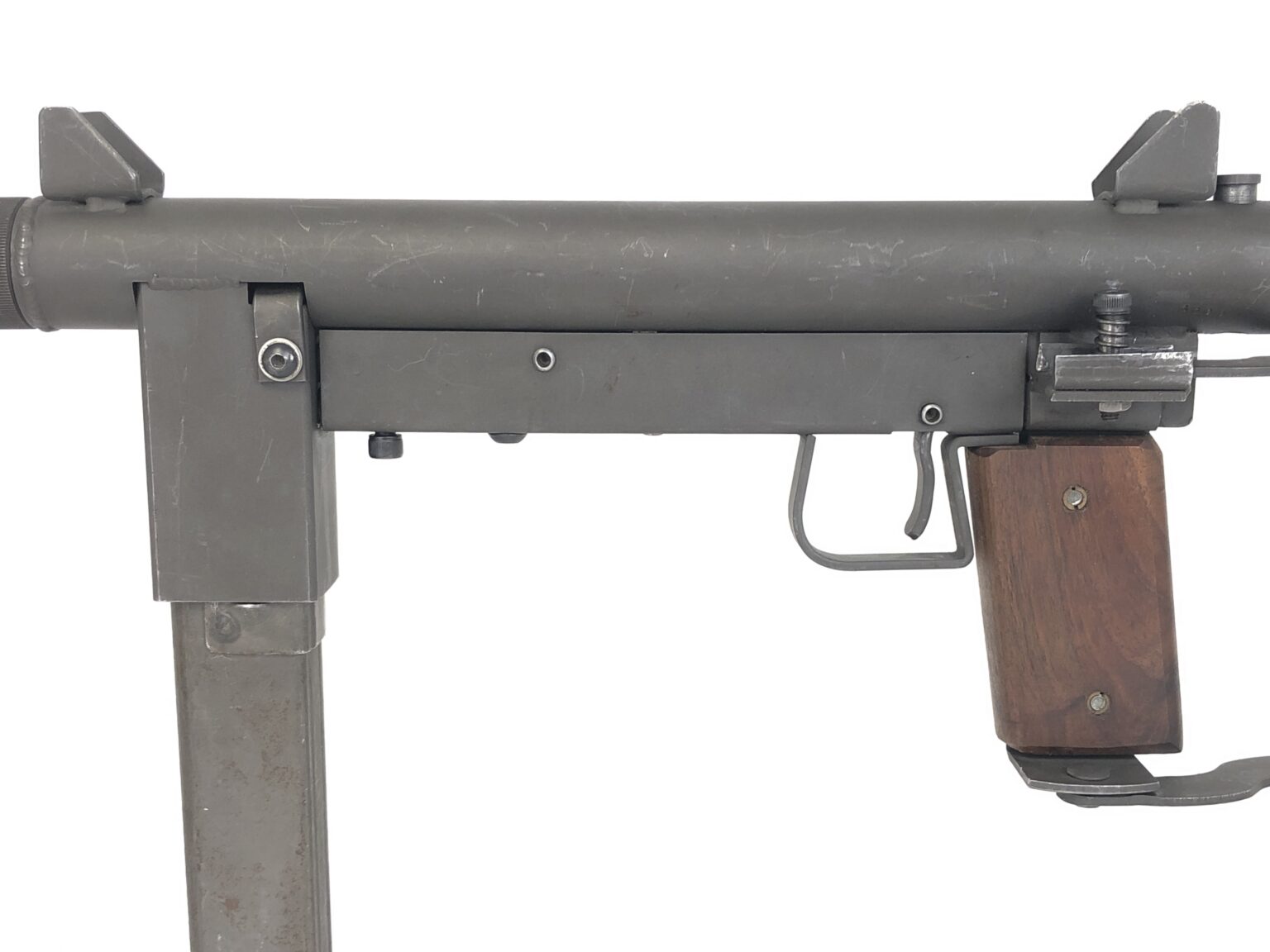 This transferable machine gun is an excellent representation of John Stemple’s adaptation of the Smith and Wesson 76 to be built in a factory original machine gun that fires the hard-hitting .45acp round. Stemple 76/45’s, while not always the sexiest of machine guns, earned quite the loyal following based on their performance and rugged ability. This model is no exception to that. This is a Stemple 1st Generation model, that features a left side folding stock, similar to the original design of a Swedish K.