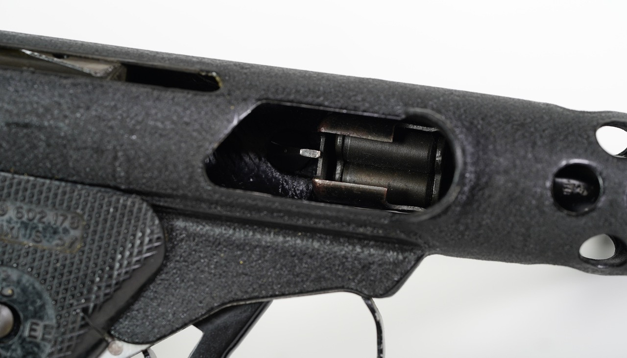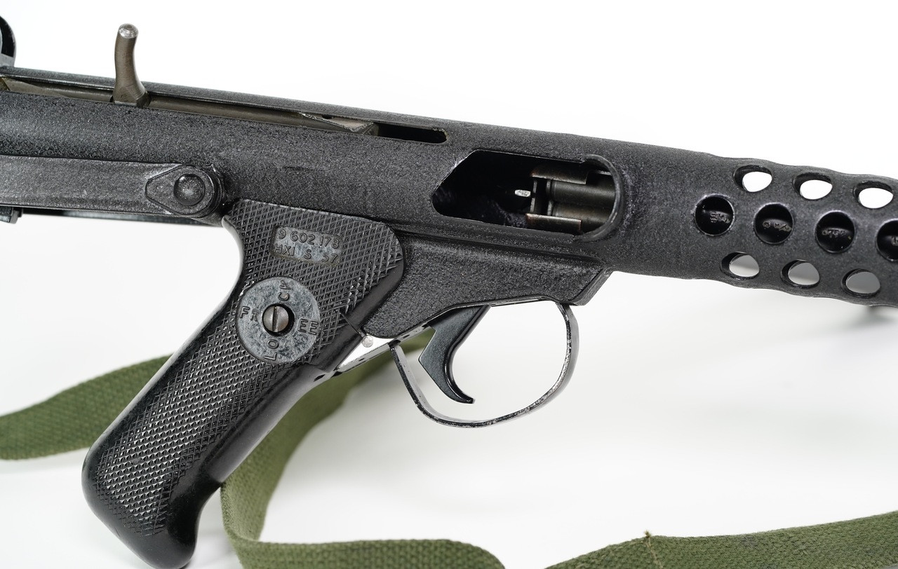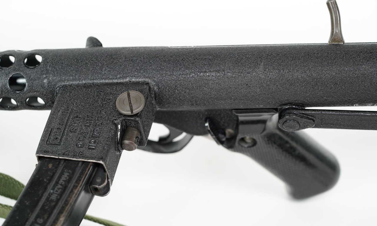 Originally built from a Sten tube that was registered by Charles Erb JR. This looks like the work of Stan Andrewski, the finish has the same characteristics of other guns we have received from him.