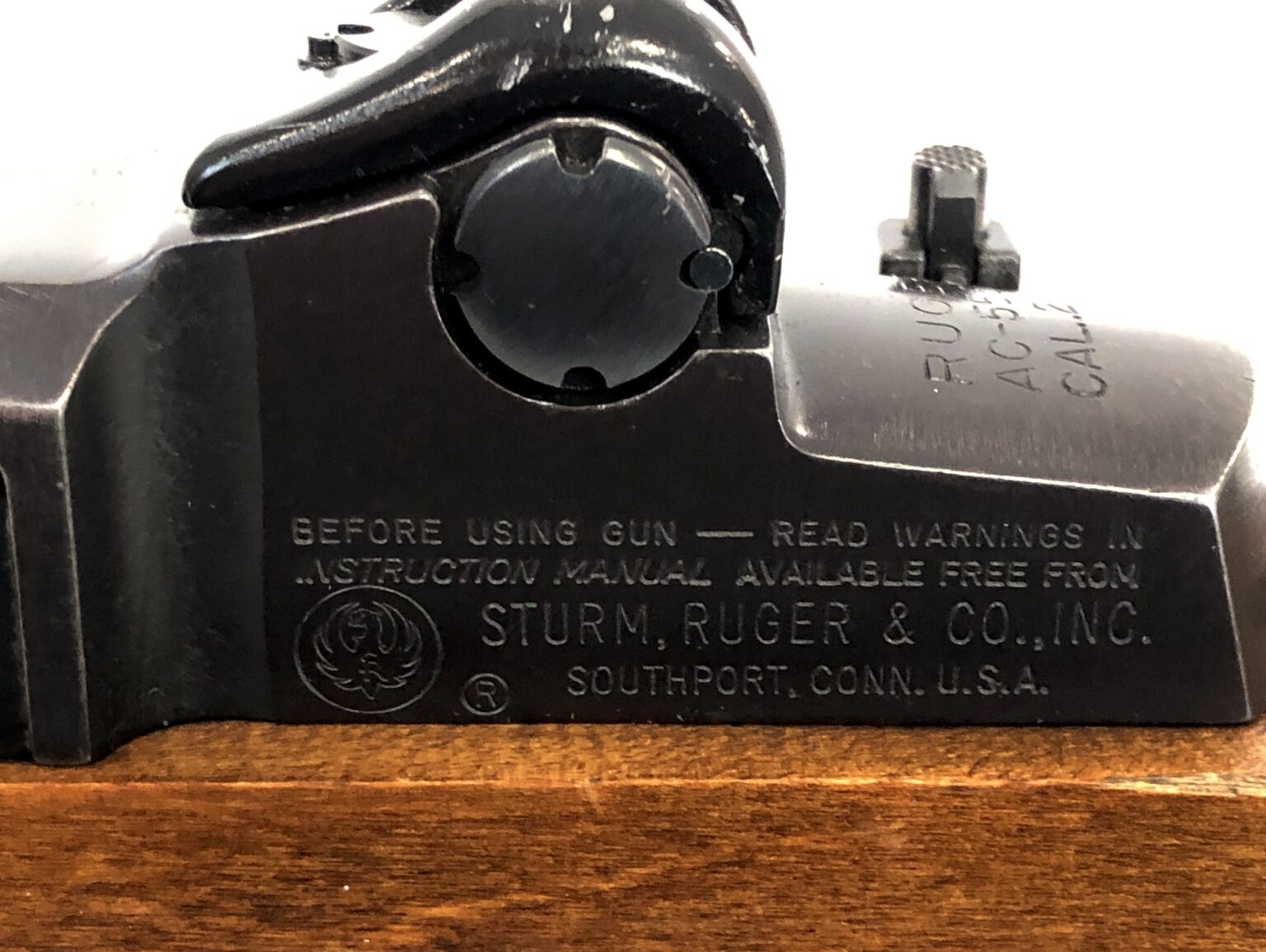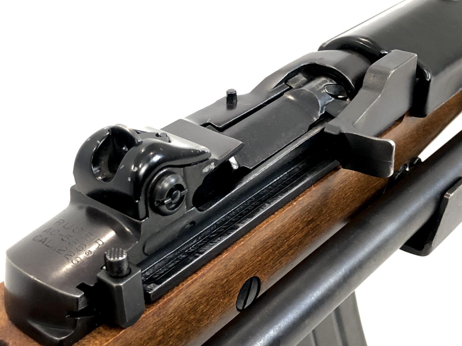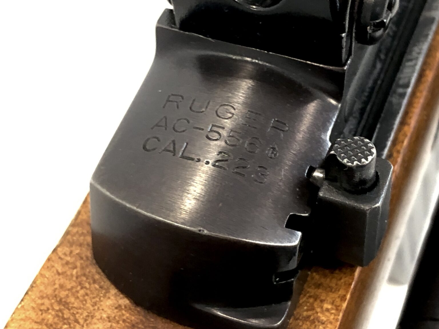 Cosmetically, the bluing of the receiver displays minor surface scratches and handling marks. The rear sight platform does note some degradation of the paint at spots, mostly on the right side of the sight. Both wooden stocks display some minor indentations and light surface marks , but no chips, cracks, etc.. The folding stock lock-up remains tight and solid. Purchase of this model will include both the folding stock, as well as its factory original Ruger AC-556 fixed stock. Purchase will also include one 30rd factory magazine, as well as a factory original manual.
