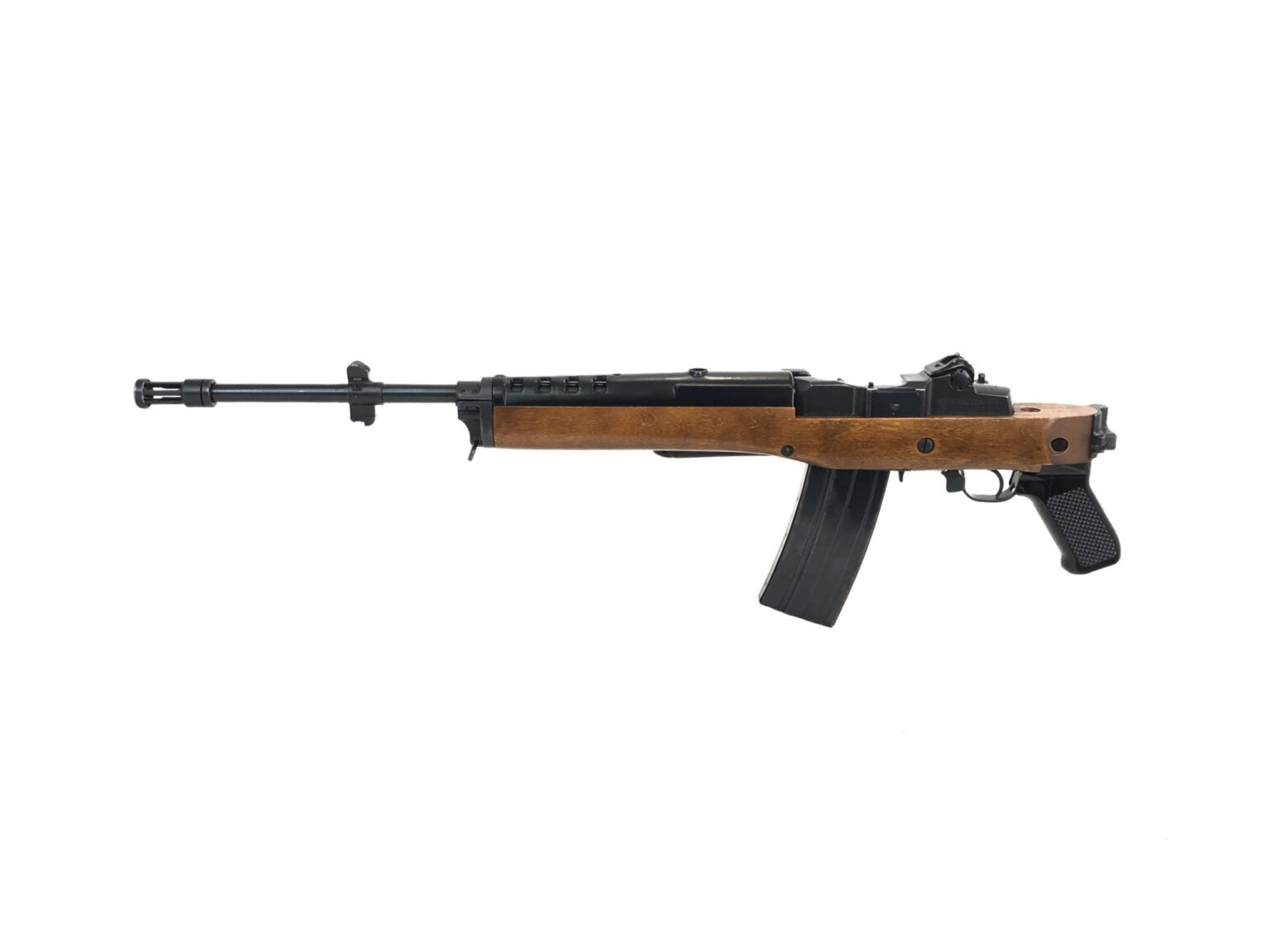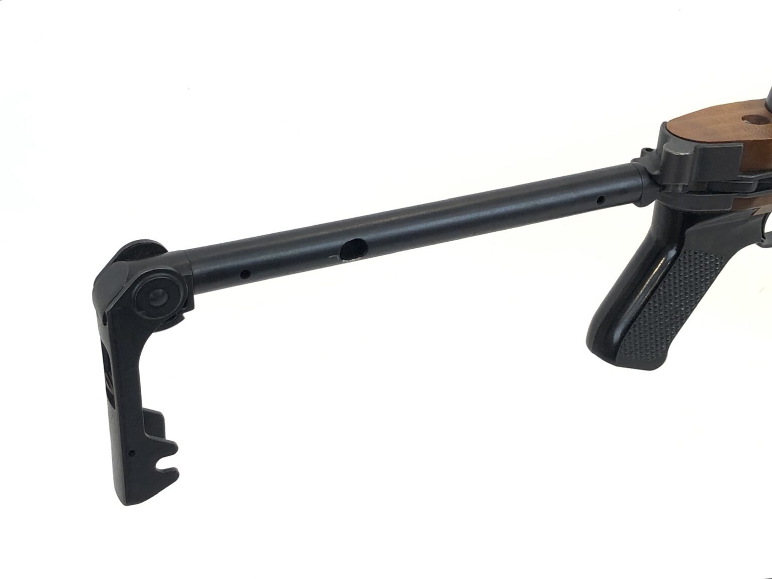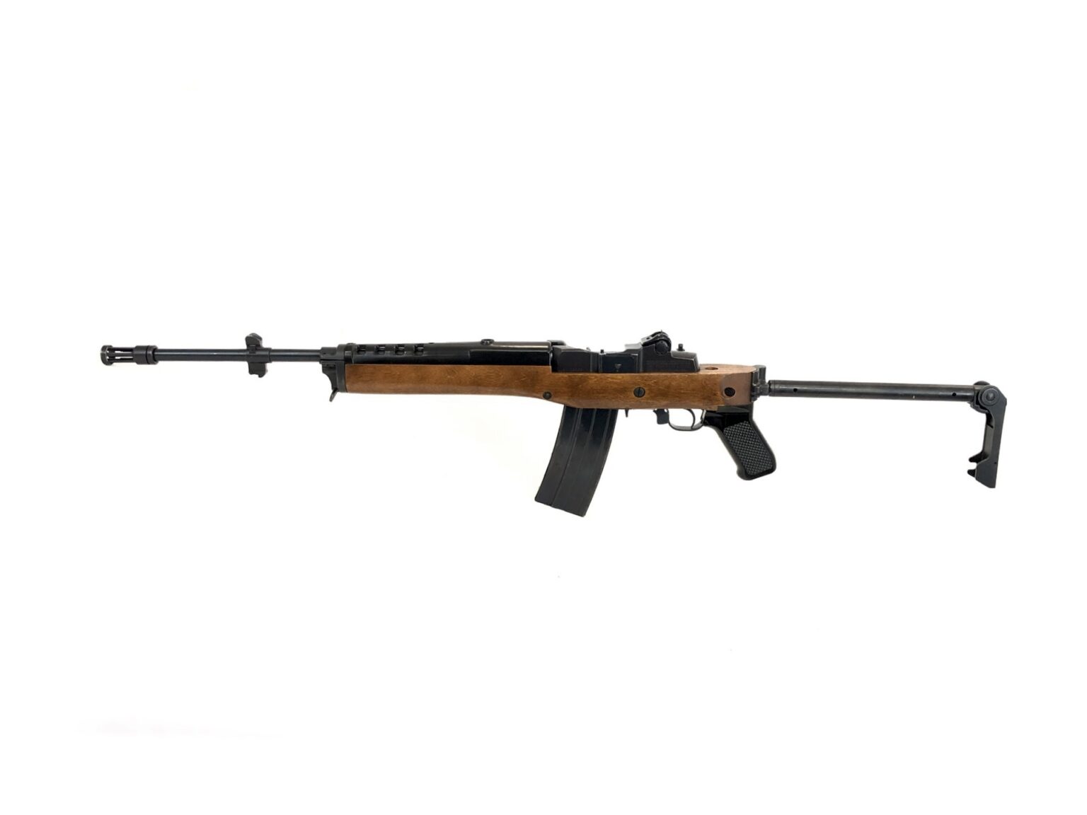 This factory-made and registered machine gun is in very good overall condition. The internal mechanics and the interior metalwork are very good, with no dings, dents, cracks, malformations, etc.. The internals on this weapon note some finish wear on the metal-to-metal contact points of the bolt and charging handle assembly. The bolt face is clean and crisp. The barrel remains clean, bright, and shiny, with excellent rifling. The installed Ruger Mini-14 folding stock has been professionally fitted and shimmed to eliminate play and increase reliability and accuracy. The stock can be easily removed and replaced with the fixed stock, but care should be taken to reinsert the installed shims for maximum accuracy and reliability. This model has been test fired and runs flawlessly with standard SAAMI ammunition.