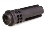 - It provides over 99% reduction in muzzle flash compared to a plain muzzle, which helps to conceal the shooter’s location and preserve his dark-adapted vision.