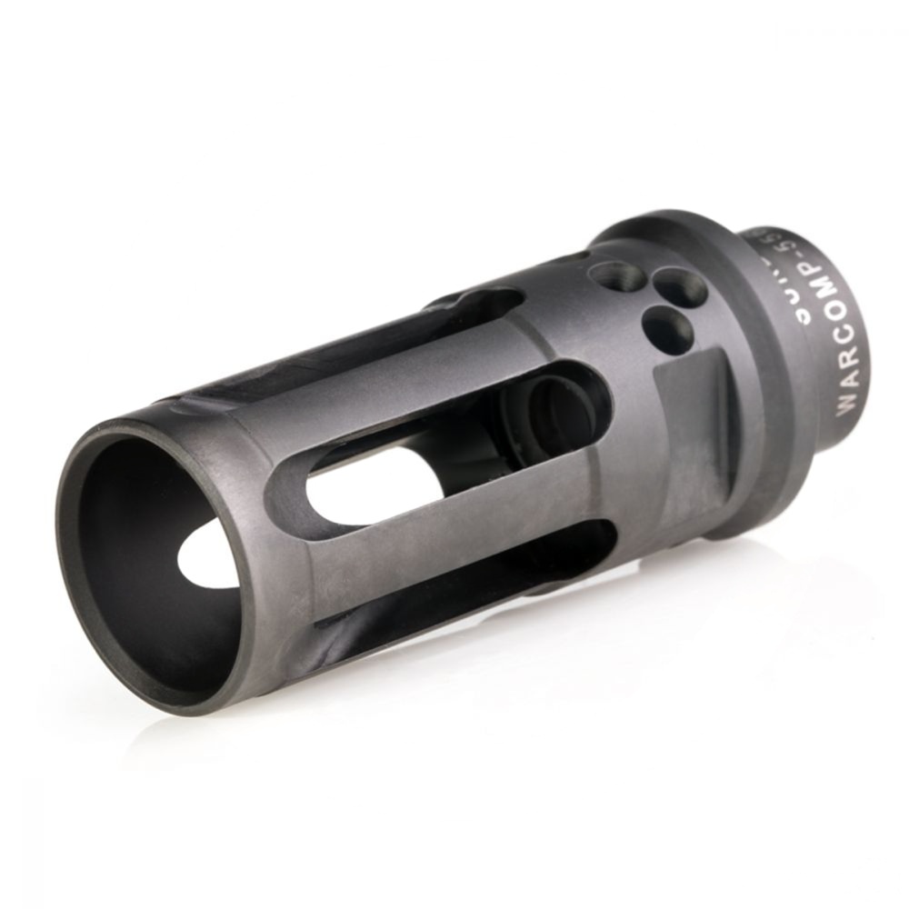 SureFire WARCOMP-556-CTN is a closed tine flash hider that is neutrally ported to aid in recoil management. Compared to that of the open tine adapters, the WARCOMP-CTN for 5.56 caliber weapons mimics that of a traditional birdcage flash hider along with being a rock solid mounting option for SOCOM Series Fast-Attach®suppressors. The muzzle device also has wrench flats machined into the sides of the adapter for aid in installation. The closed tine option does not have as much flash reduction to that of the open tine adapter but still is very capable.