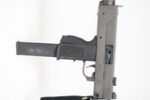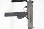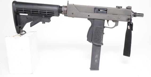 This slick little gun has had the magwell upgraded with more ergonomic grip and easier to use mag release. Also have an attachment to use standard AR-15 collapsible buttstocks.